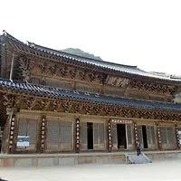 여느 사찰과는 달리 어딘지 모르게 휑한 느낌이다. 전각이 한 곳에 집중돼 있지 않고, 사방이 모두 확 트인 배경 탓 때문일까. 사찰의 첫 관문인 일주문을 오르니 그 모양새가 참으로 특이하다. 양 옆으로 난 기둥은 통나무를 그대로 썼고, 그 앞뒤로 돌 기둥위에 작은 기둥을 세워 지붕의 무게를 지탱하고 있다. 팔작지붕의 화려한 일주문은 건축한 지 그리 오래되지 않은 건물로 보인다.