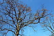 늘 푸른 하늘과 불게 물든 단풍 사진.