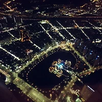 저 앞 가까이에 하늘 높이 솟은 건물이 우뚝 서 있다.