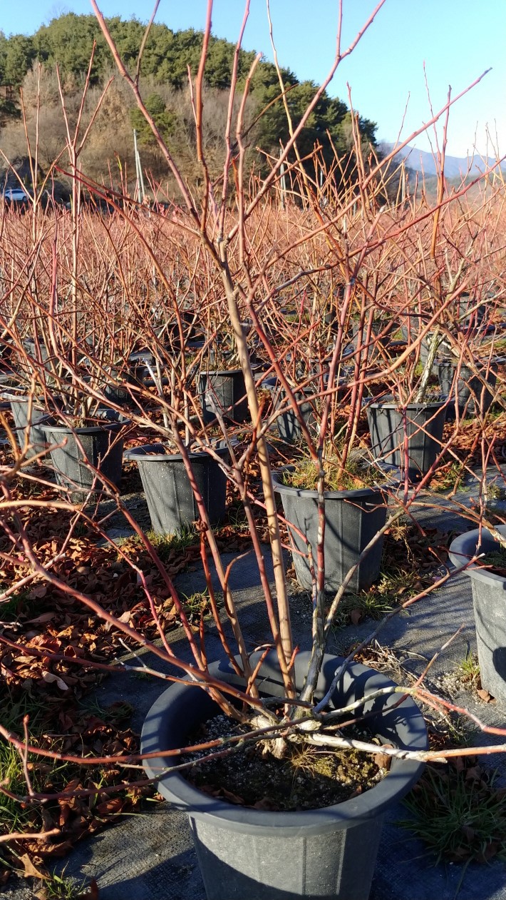 블루베리 묘목은 보통 2가지 형태로 판매하는데, 2~3년생 비닐포트에 담은 것과 3~4년생 플라스틱 화분에 담은 것입니다.