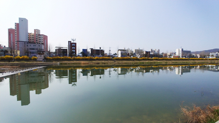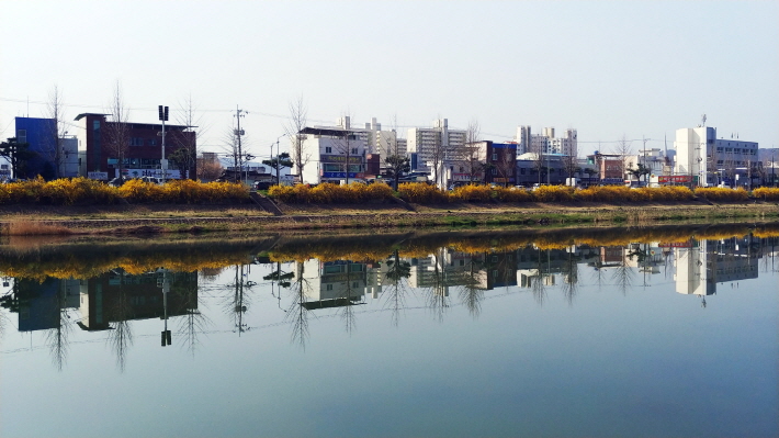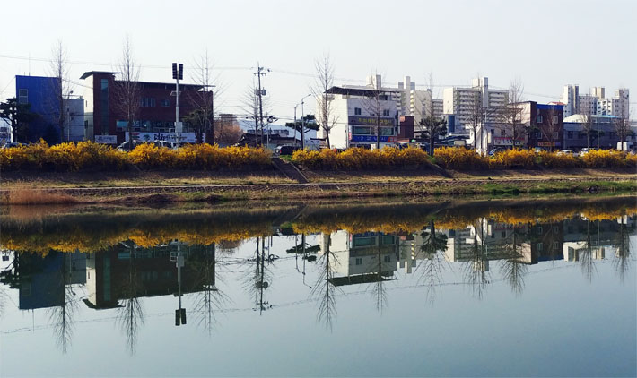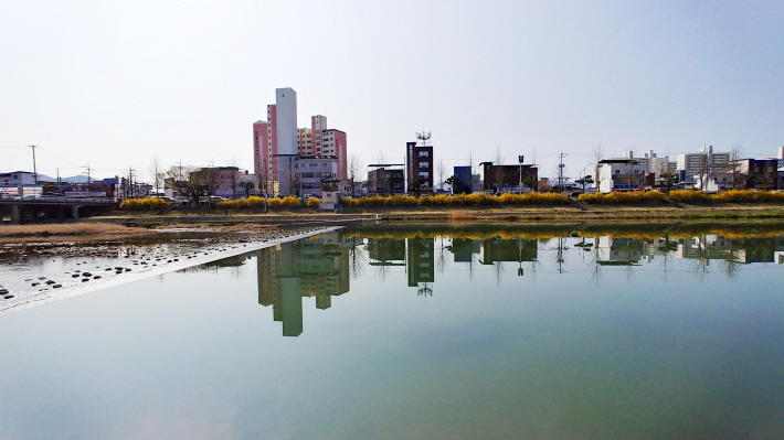 맑은 위천 물에 비친 도심의 풍경에서 고단한 내 삶의 모습도 볼 수 있을 것만 같습니다.
