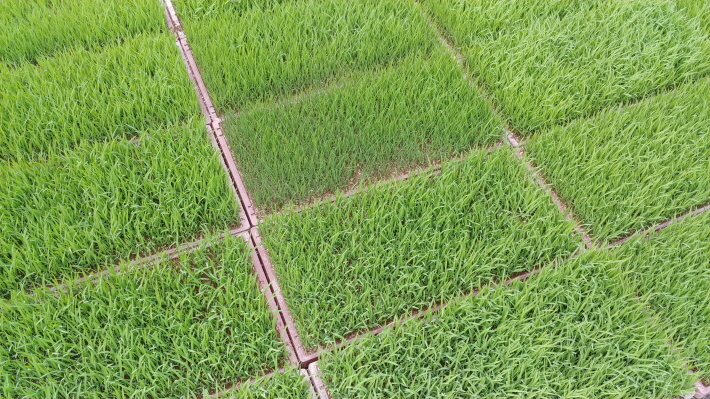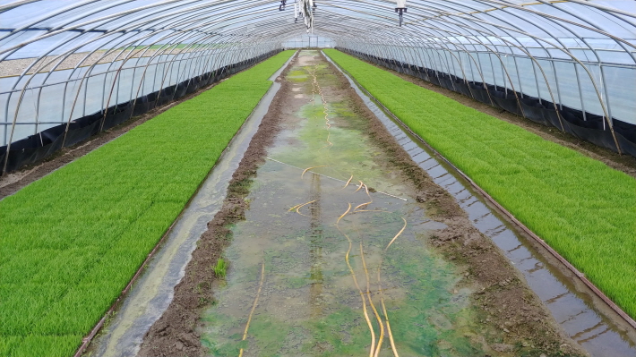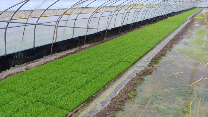 올 벼농사에 필요한 모가 온실에서 잘 자라고 있다.