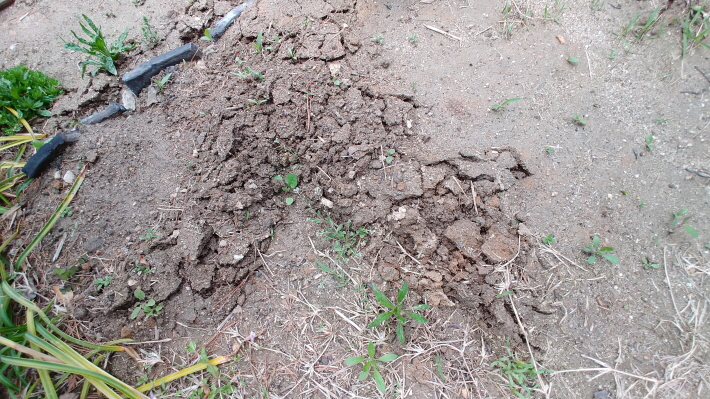 땅을 쩍쩍 갈라진 곳을 발로 밟아 다져 놓지만 며칠을 가지 못한다.