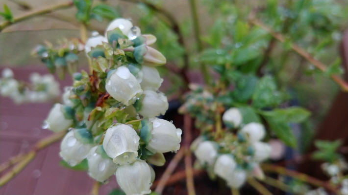 4일 현재의 블루베리 묘목상태는 꽃눈이 떨어지는 상태로, 이는 열매를 맺기 위한 과정입니다.