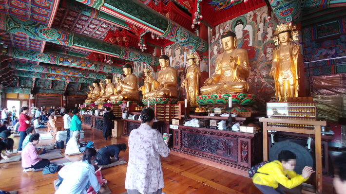 웅장한 법당 안에 불보살상이 많아서였다.