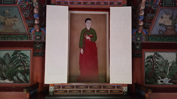 최초 영정은 진주사람 강주수가 그려 기증하고 1939년 가을, 이당 김은호가 그린 영정을 나란히 봉안하였으나 6.25중에 훼손되어 1961년 기증받은 이당 김은호 화백이 그린 춘향의 영정이 현재까지 봉안되고 있다.