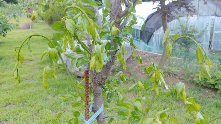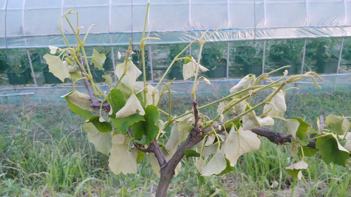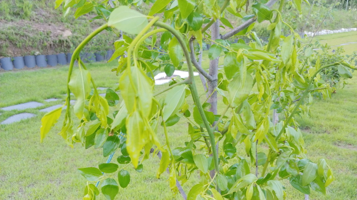 잎이 말라비틀어지고 연한 새순 가지가 축 늘어지는 현상을 보였기 때문.