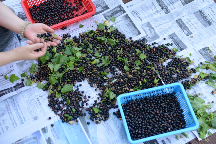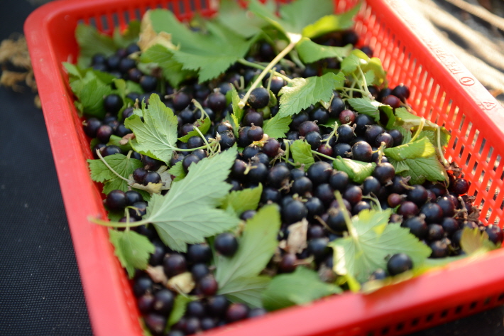 2019년 6월 9일, 죽풍원에서 키운 블랙커런트를 수확하였습니다.
