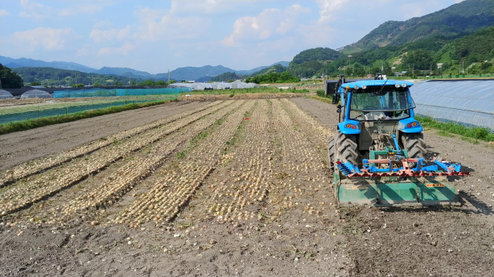 함양군에서는 지역 단위 농협과 연계하여 지난 4월 1차로 6.4ha의 양파를 현지에서 폐기했습니다.