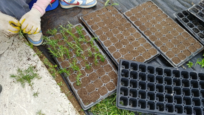 1. 로즈마리 큰 묘목에서 작은 가지를 잘라,