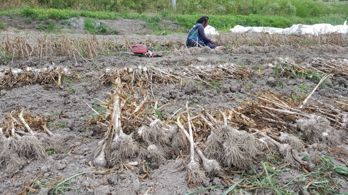 양파와 마늘은 수확 중에 있으며, 예약하신 분들에 대하여는 충분히 건조 한 후, 택배 발송 예정으로 있습니다.