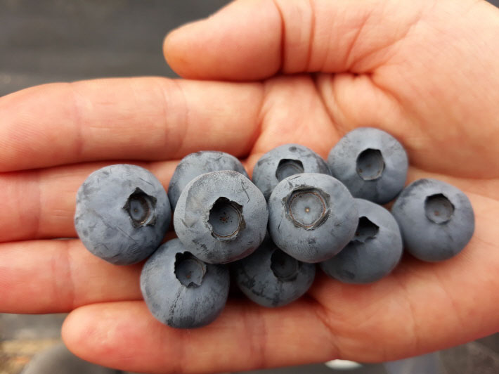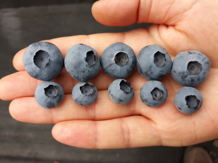 100원 동전 크기의 최상품 블루베리는 거의 수확을 마쳐 가는 시기입니다.