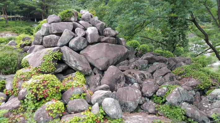 아녀자들과 마녀할멈이 흘린 눈물이 돌에 스며들어 돌과 돌이 붙어 지금과 같은 아주 큰 바위가 되었다고 전해오는 돌무더기다. 이때 돌무더기의 넓이가 수백 평에 이르고 높이 또한 수십 미터가 되었으나 도로확장 등으로 훼손되어 현재에 이르고 있다.