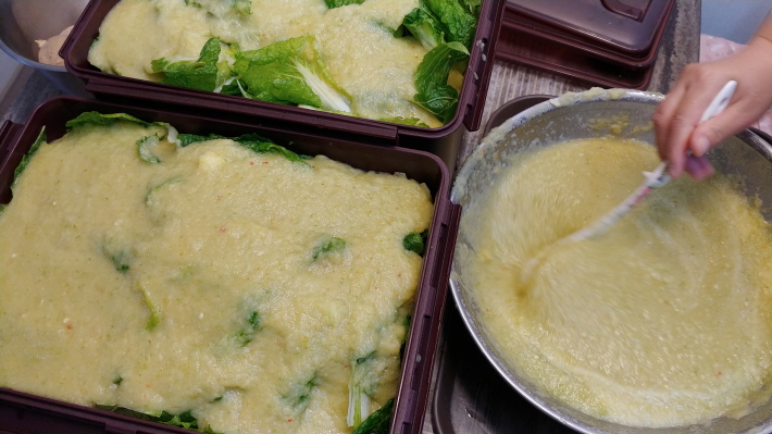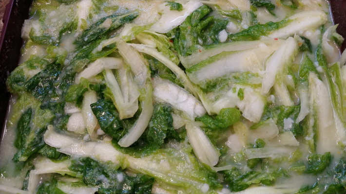 지난봄에 심은 단배추와 열무를 수확하여 물김치를 담았습니다.