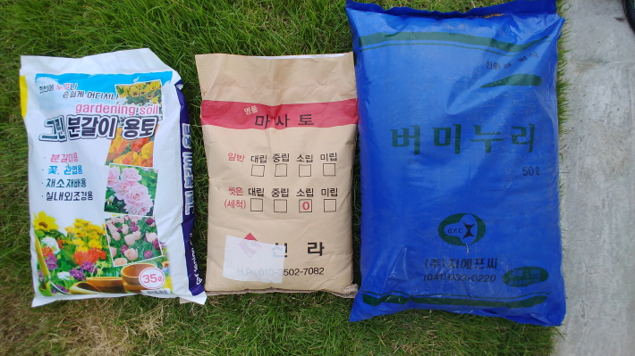 하지만 오늘은 그저 포트에서 자체 제작한 나무화분이나, 기왓장에 옮겨 심는 것에 도전해 보았습니다.