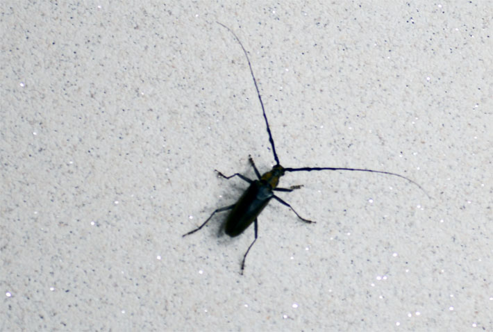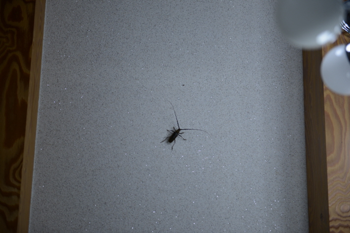 덩치가 큰 장수하늘소도 천장에 붙어 꿈쩍도 않고 몇 시간을 보내고 있습니다.