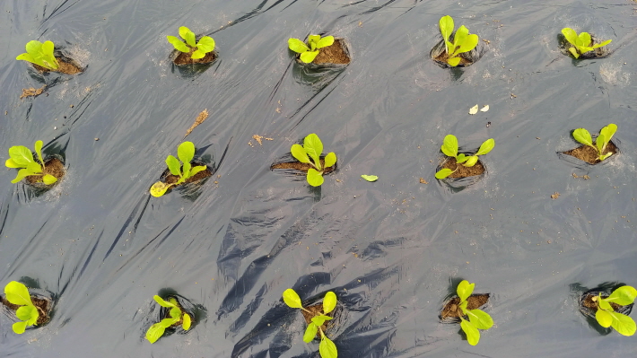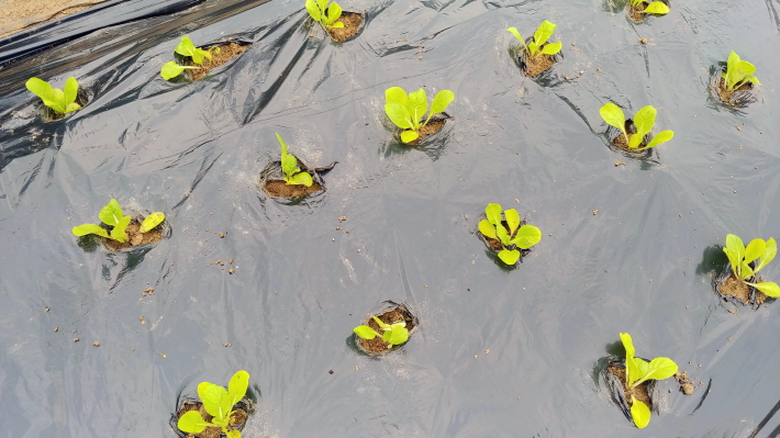 “왜 이렇게 쏘물게(배게) 그리고 깊게 심었어요? 그리고 비닐 구멍 주변으로 흙을 덮어야 좋습니다. 그래야만 비닐 안 열기로 인해, 어린 모종 잎이 타는 것을 방지할 수 있습니다.”