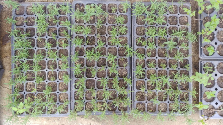 처음으로 해 본 허브 삽목 수량은 150개였는데, 현재 두어 개만 죽고 생생하게 살아 있는 상태입니다.