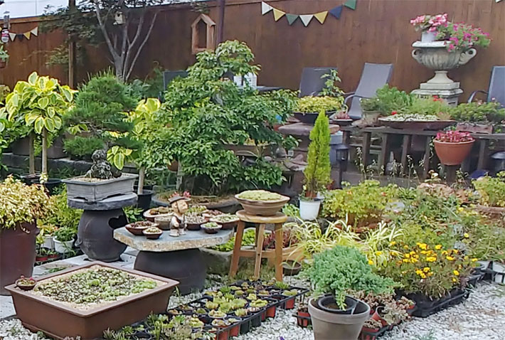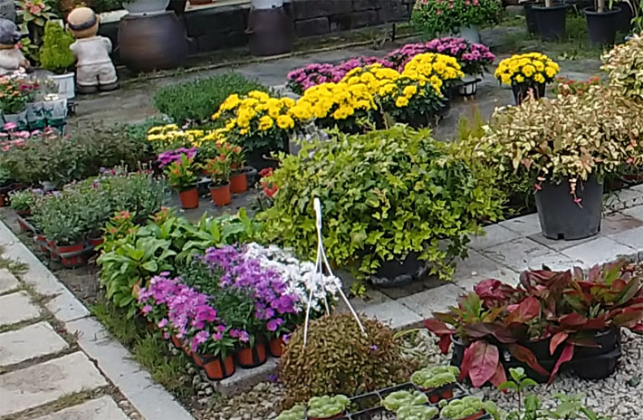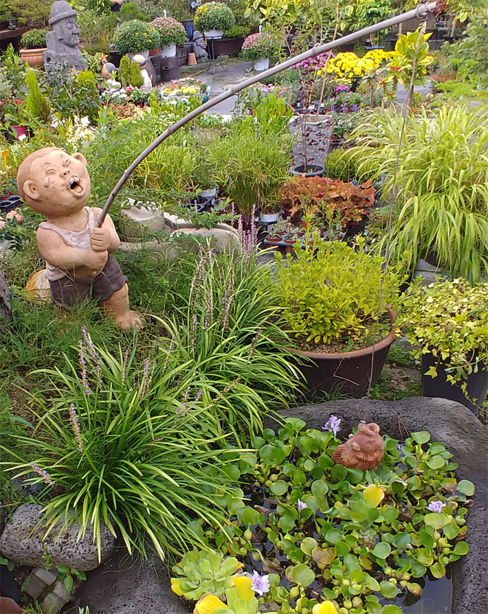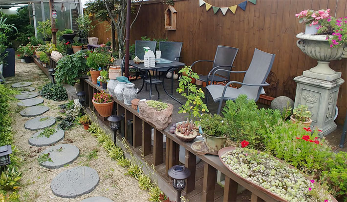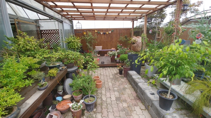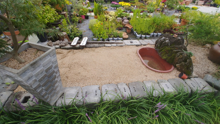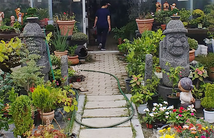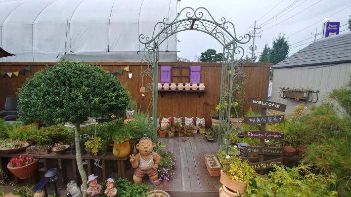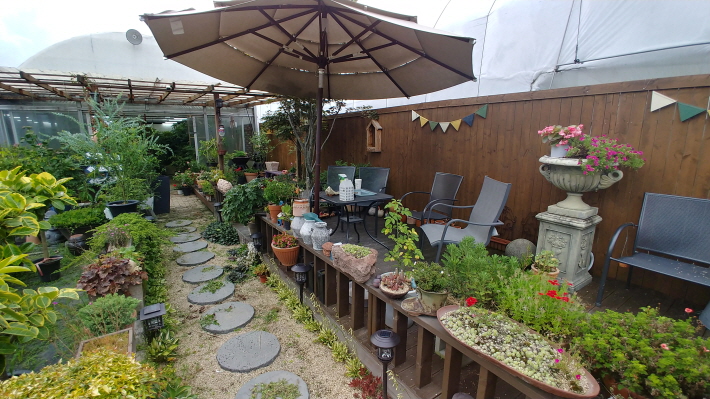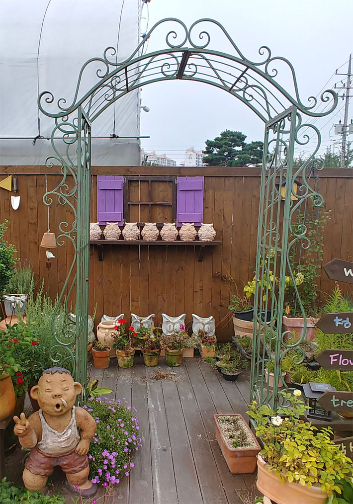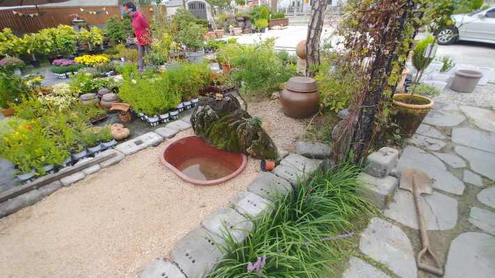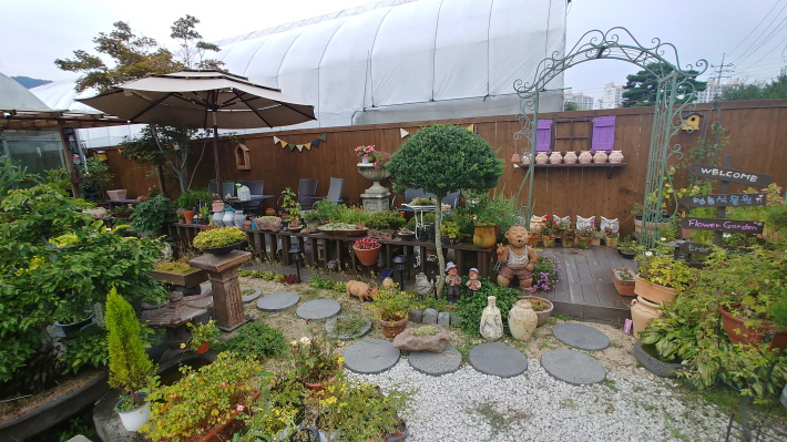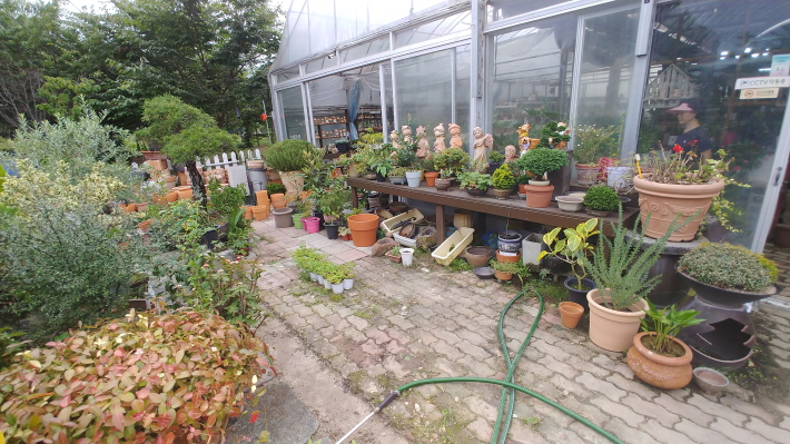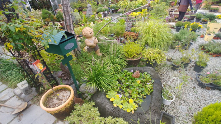 이름 모를 다양한 꽃들, 다육식물, 여러 종류의 토기, 고목 분재 그리고 정원에 필요한 소품 등 어느 하나 눈에 들어오지 않는 것이 없다.