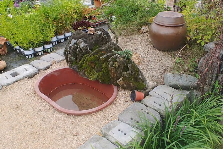 제주에서 나는 큰 화산석으로는 작은 연못을 만들었고 수생식물이 자라도록 해 놓았다.