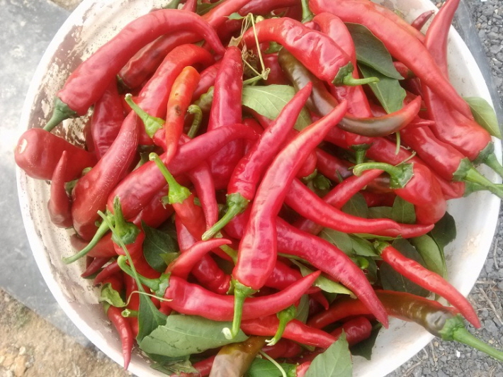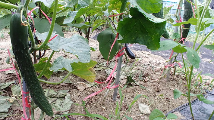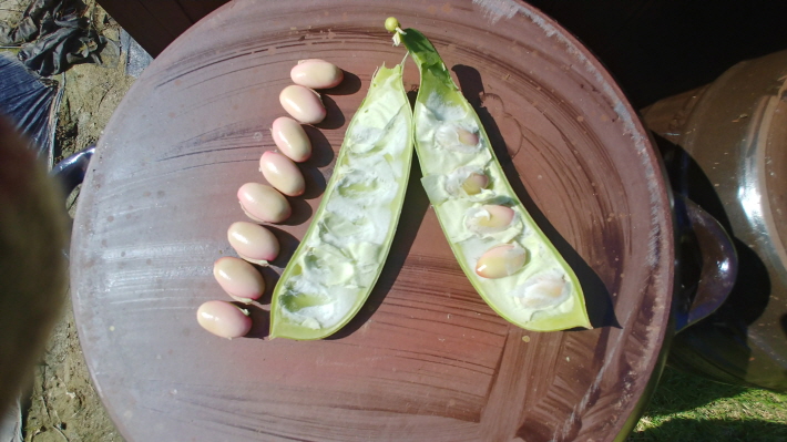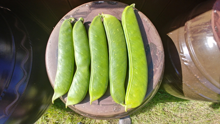 지난봄에 심었던 고추, 토마토, 오이, 가지, 호박 그리고 완두콩 등 여러 작물을 수확하였습니다.
