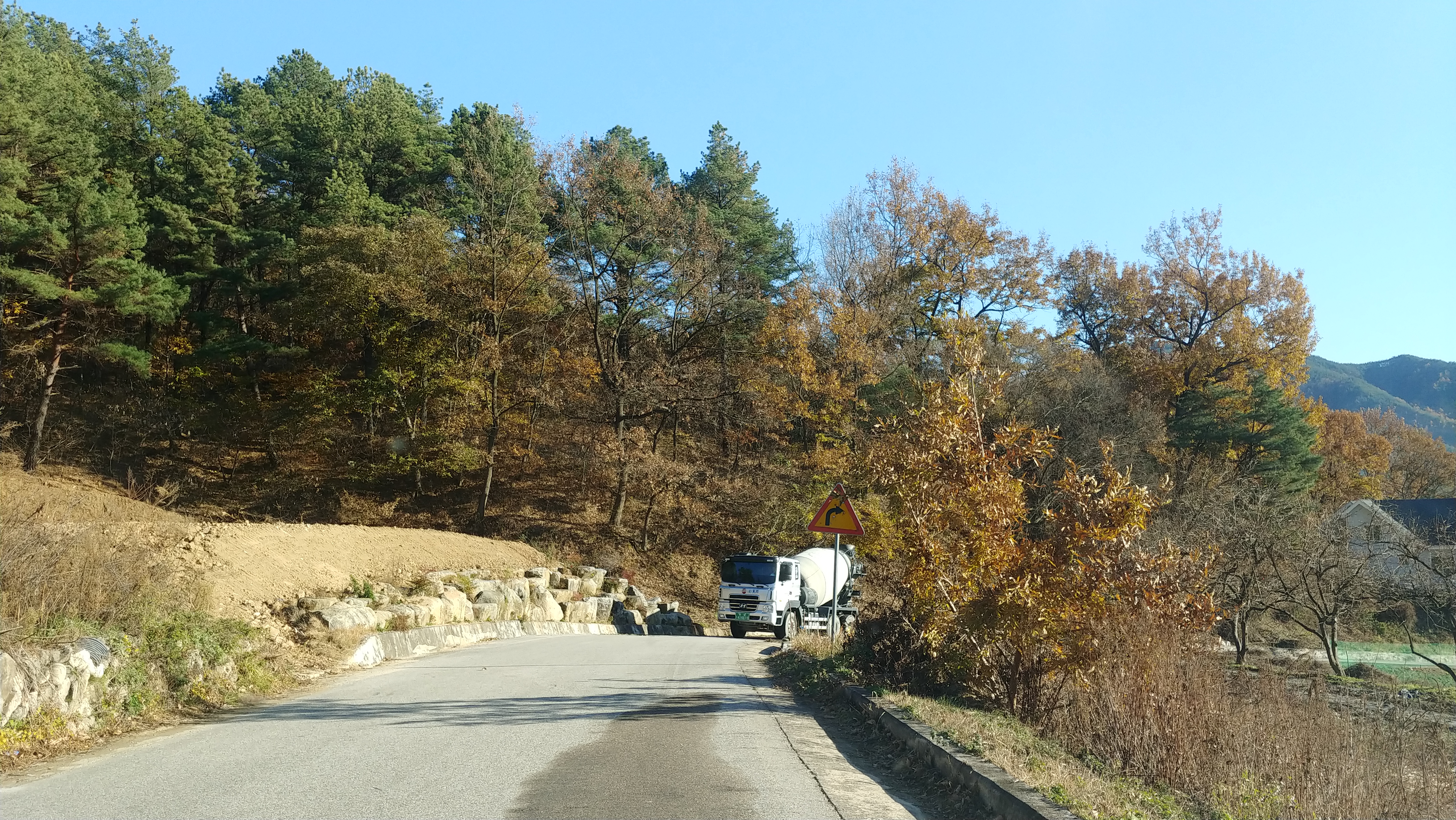 교각 건설로 인한 레미콘 차량은 집 앞을 지나게 되는데 레미콘 타설이 있는 날은 불안하기 짝이 없는 실정입니다.