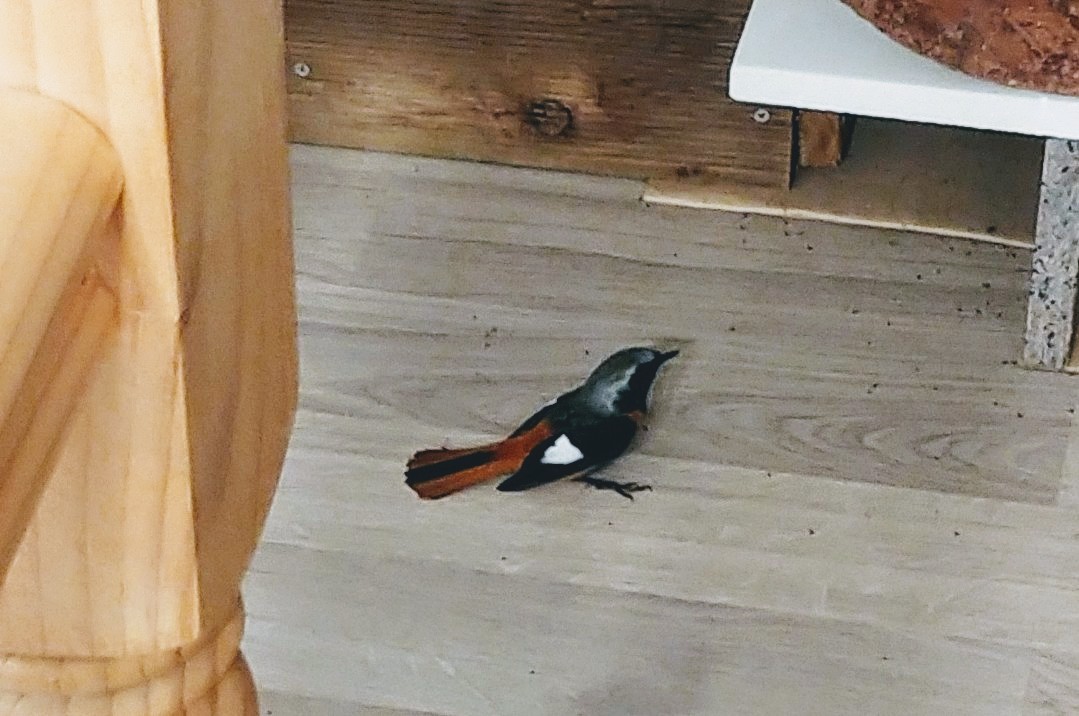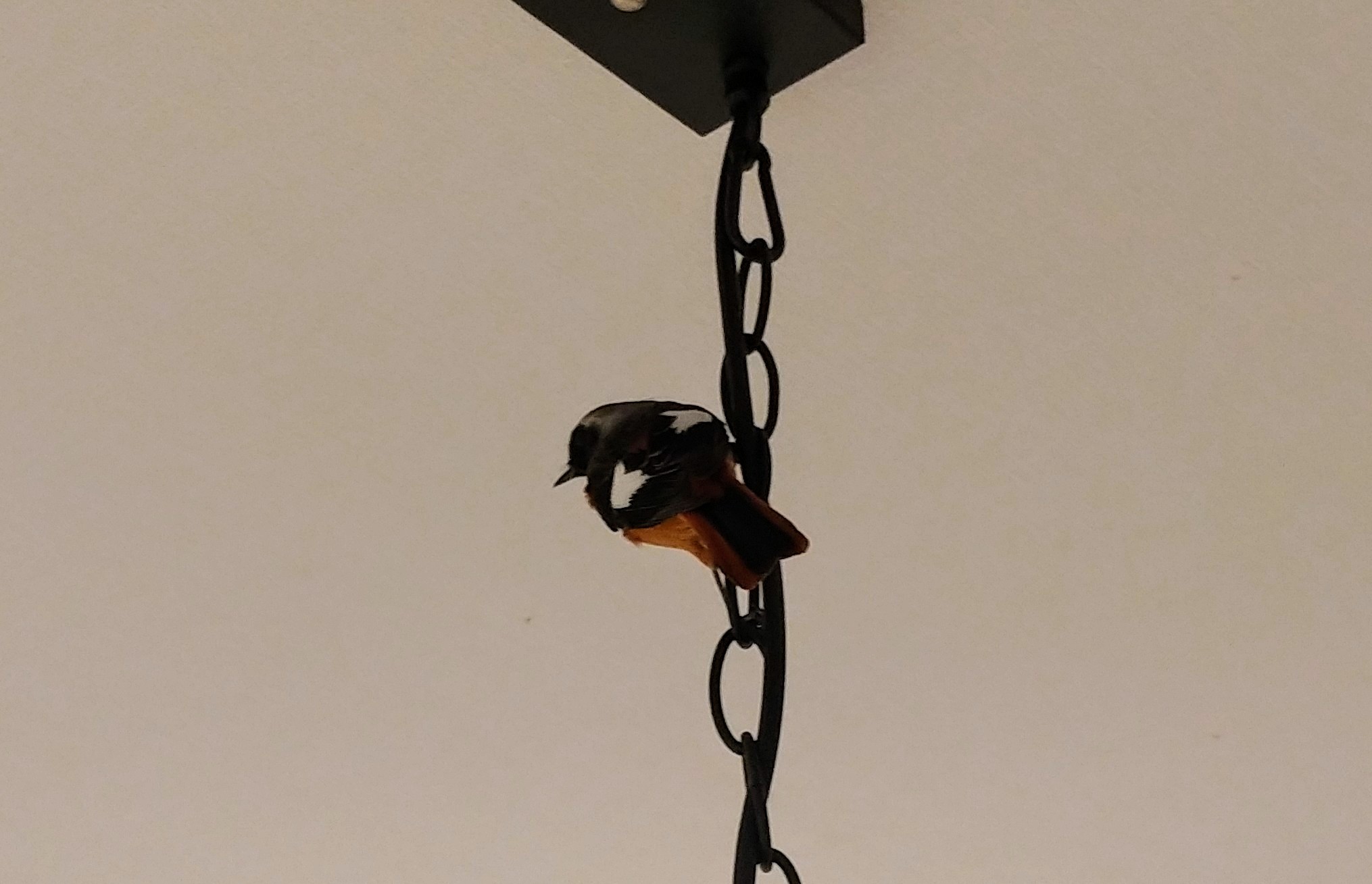 천장에 매달린 전등에도 앉았다가 바닥에도 앉는 등 안절부절하는 모습이 안타깝습니다.