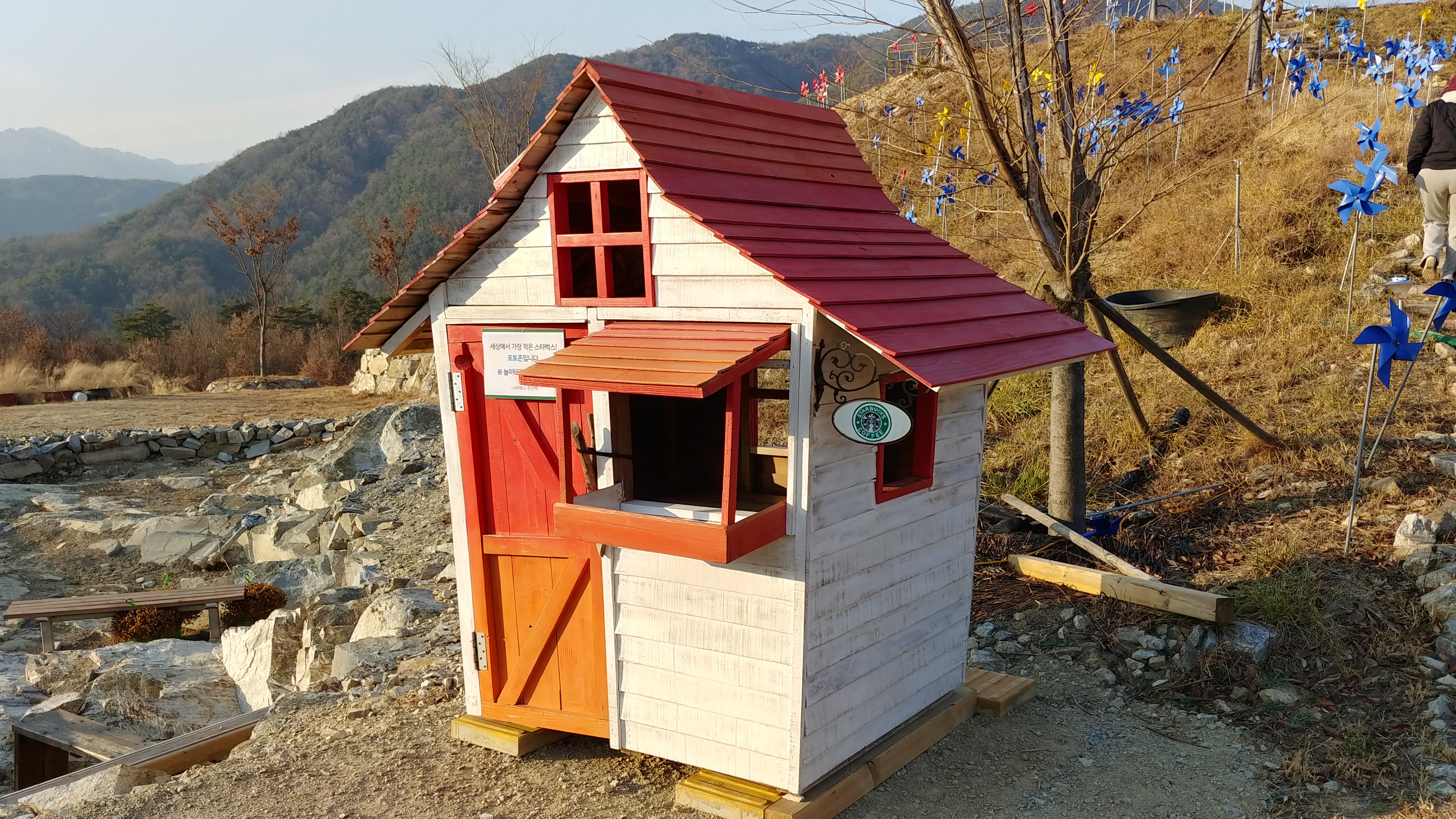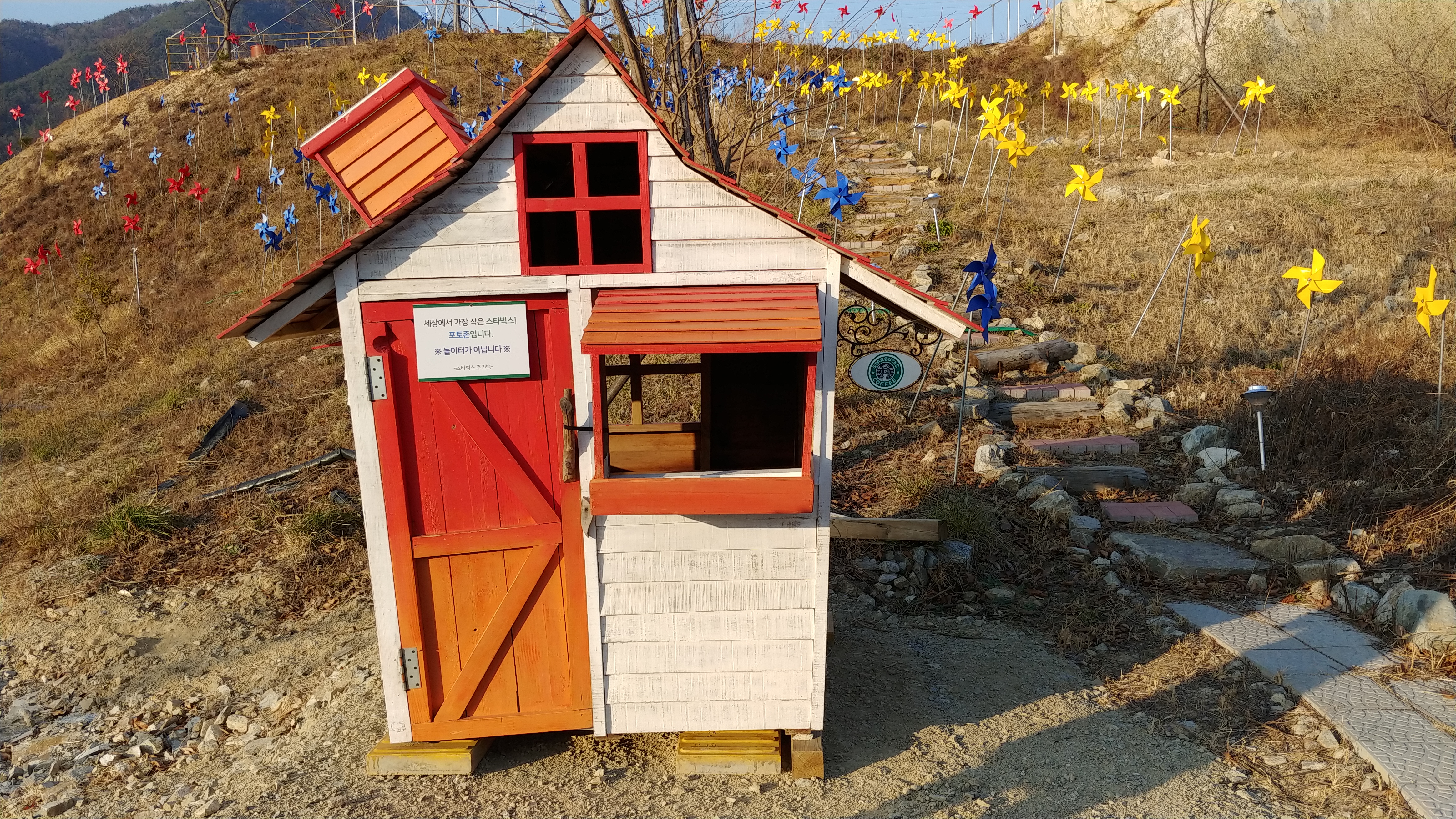 다만 종업원이 커피를 내리고 손님을 접대하는 공간이라기는 보다, 야외 장식용으로 조형된 작은 집입니다.