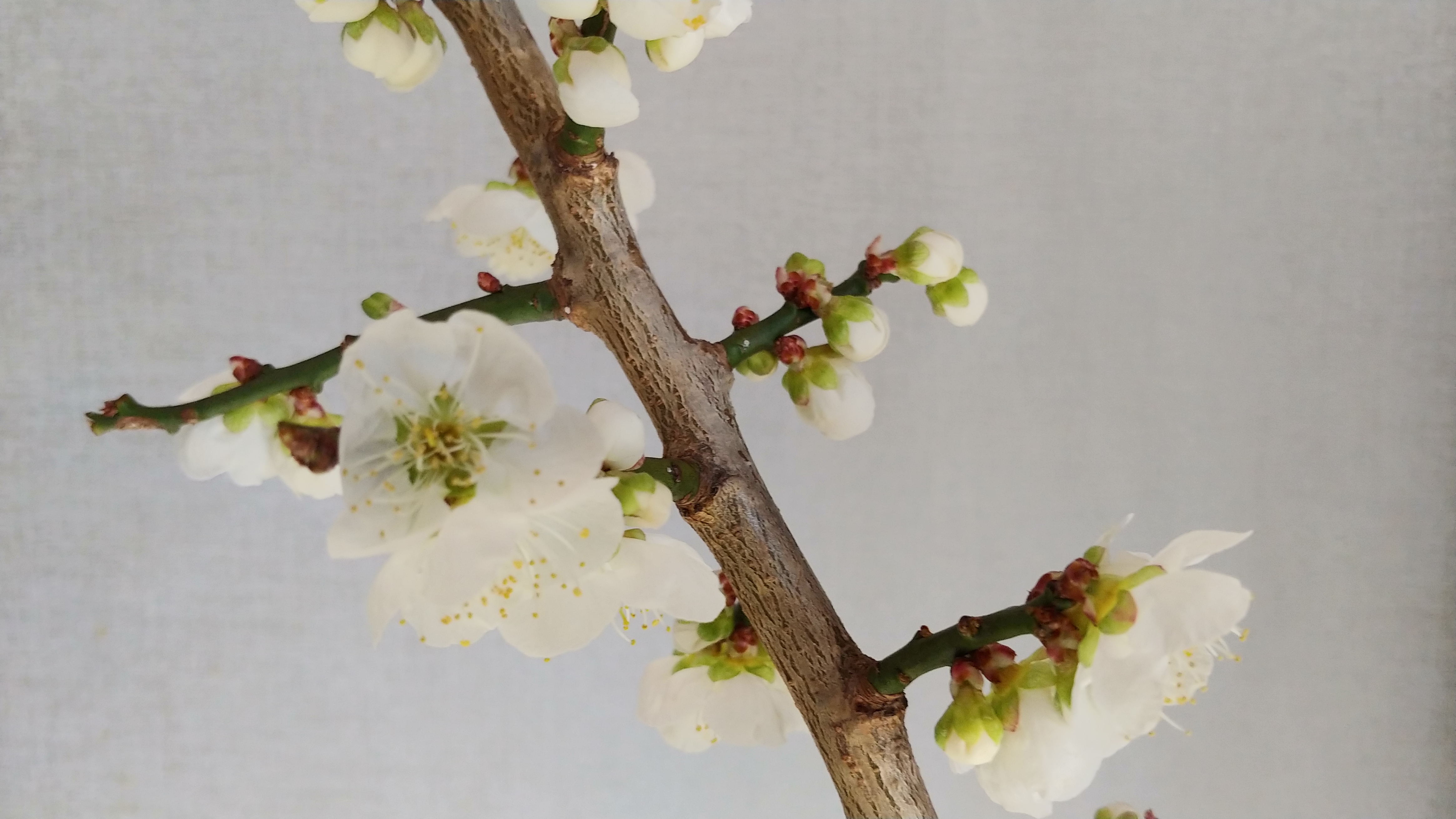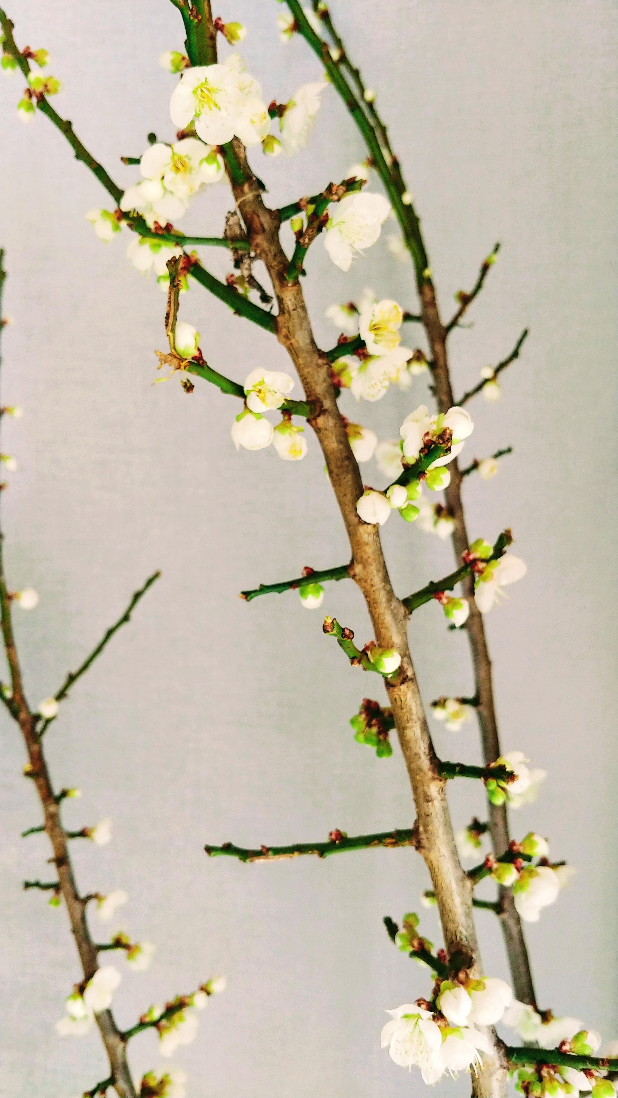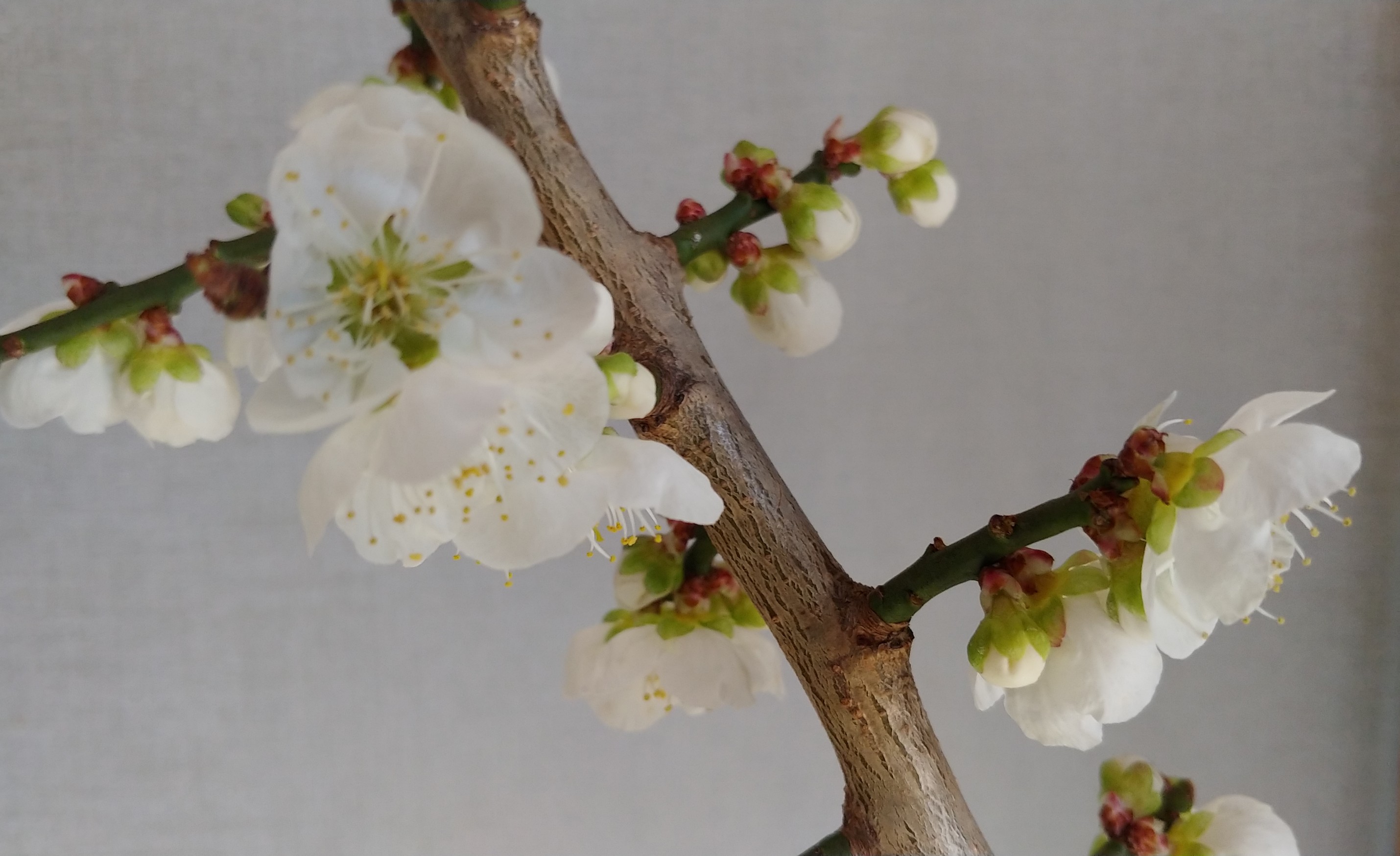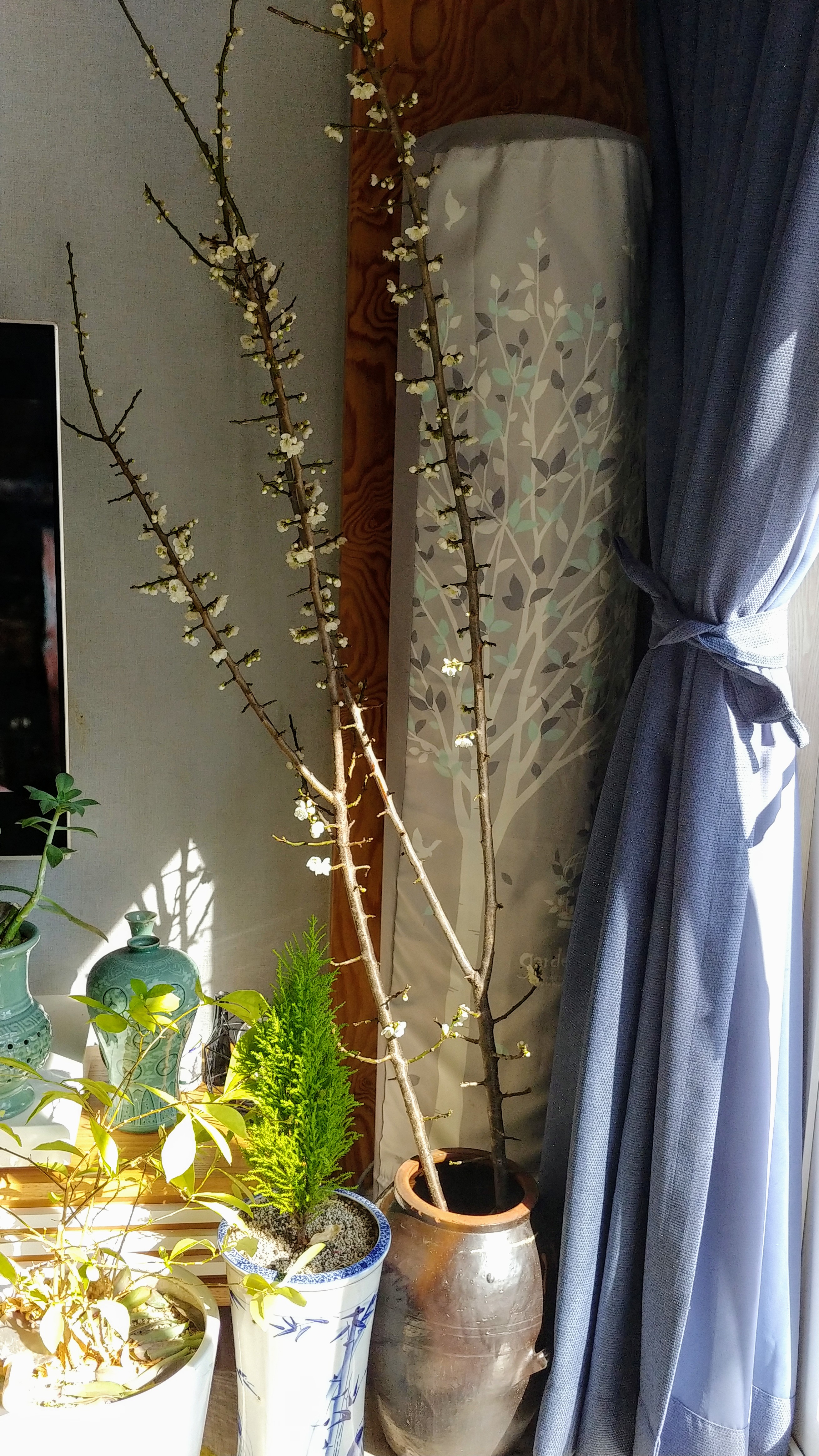 가지를 꺾어 물을 담은 항아리에 담아 집안에 두었더니만 꽃을 피웠습니다.