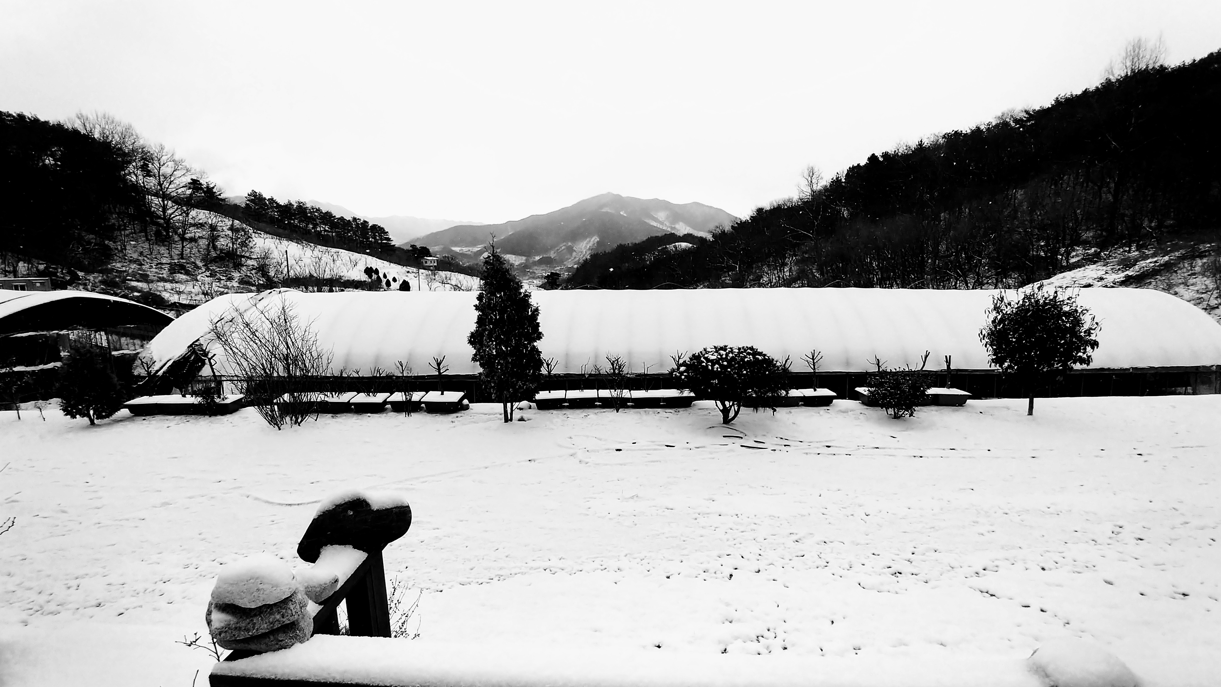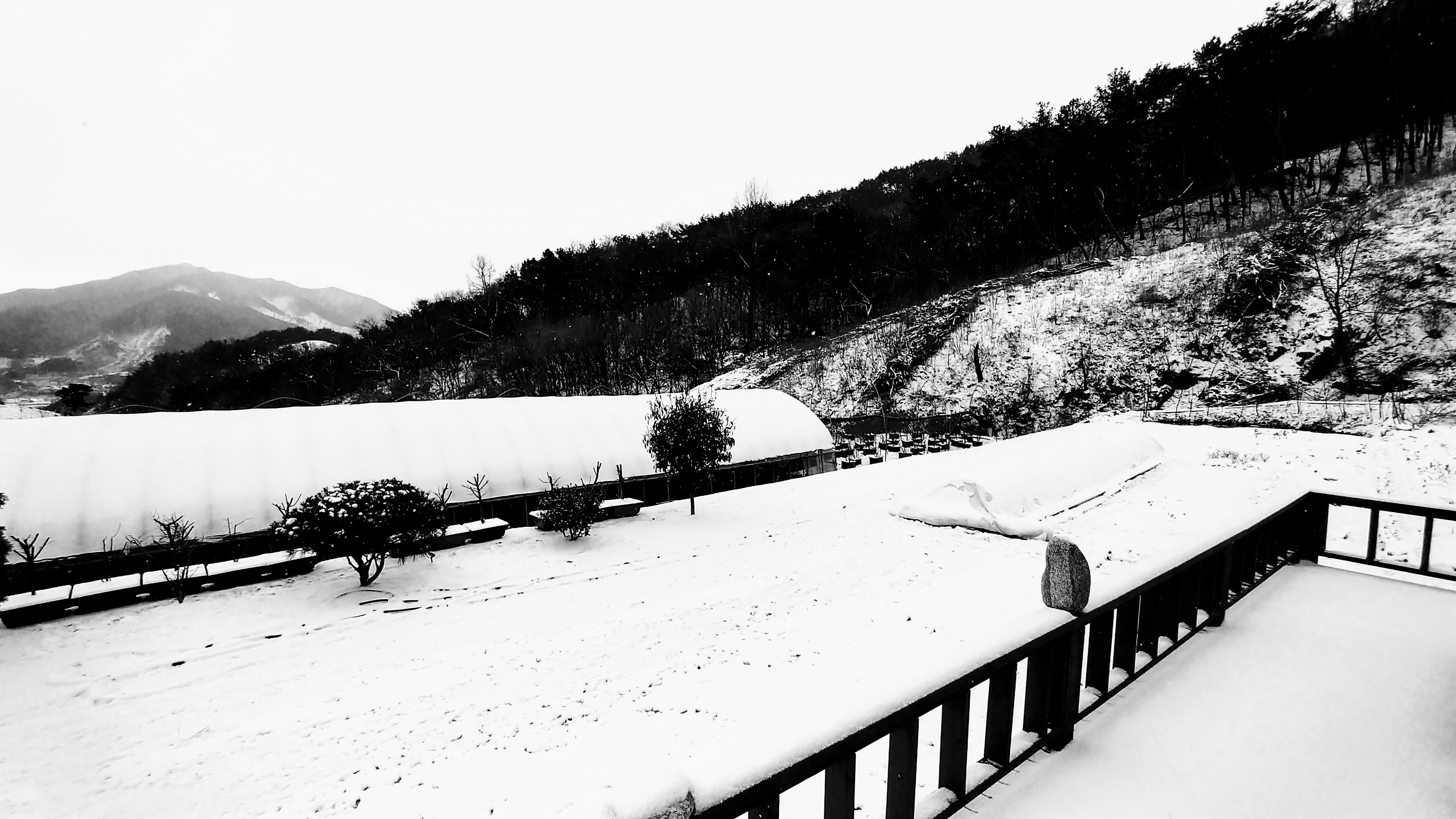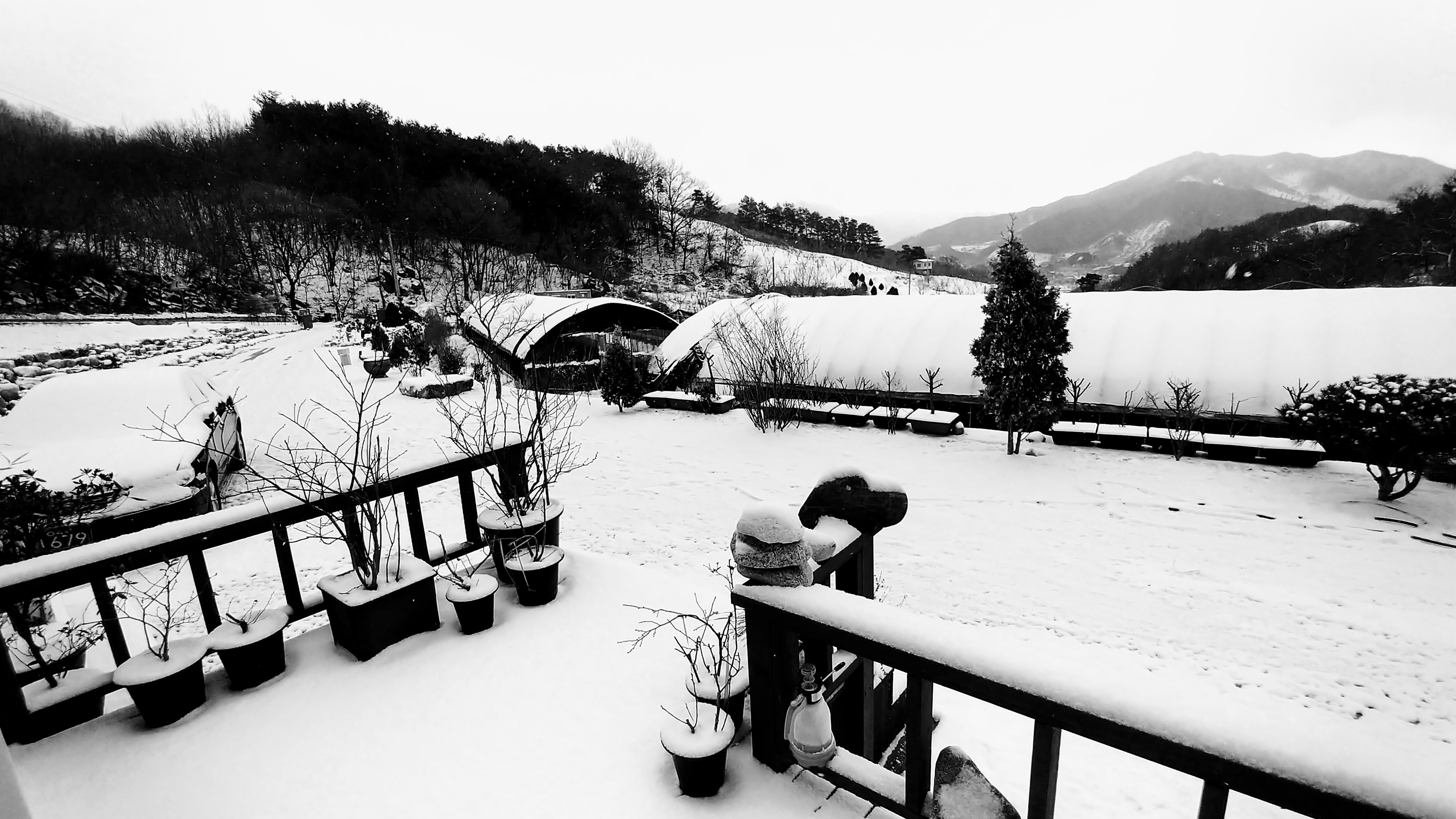 죽풍원을 하얗게 변하게 한 설경입니다.