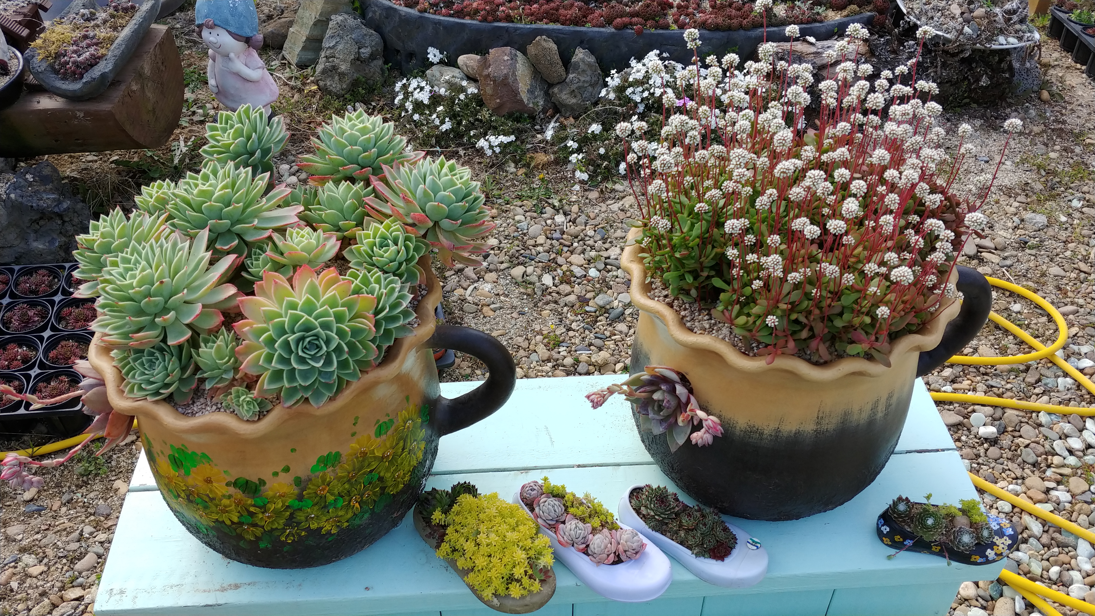 지난 겨울을 하우스에서 지낸 다육이는 봄을 맞아 세상 밖으로 나왔습니다.