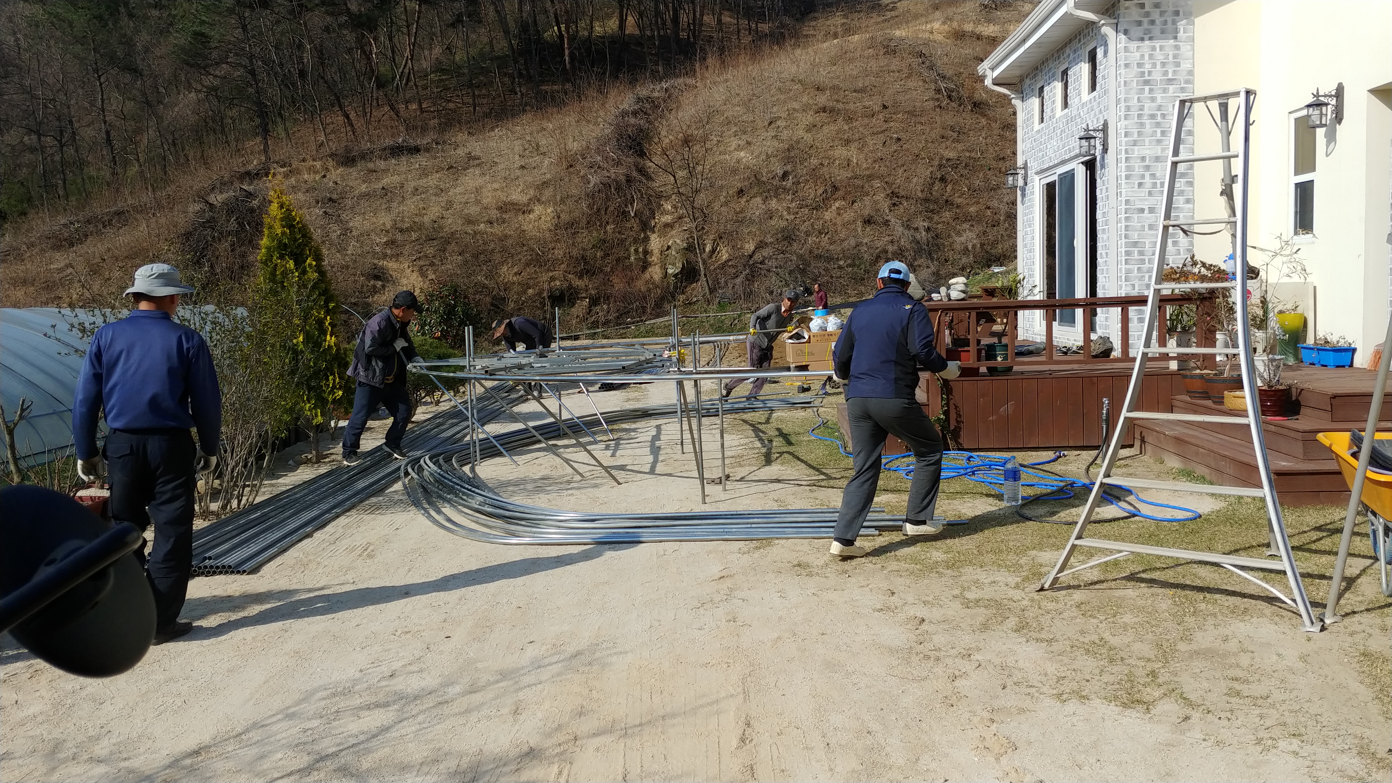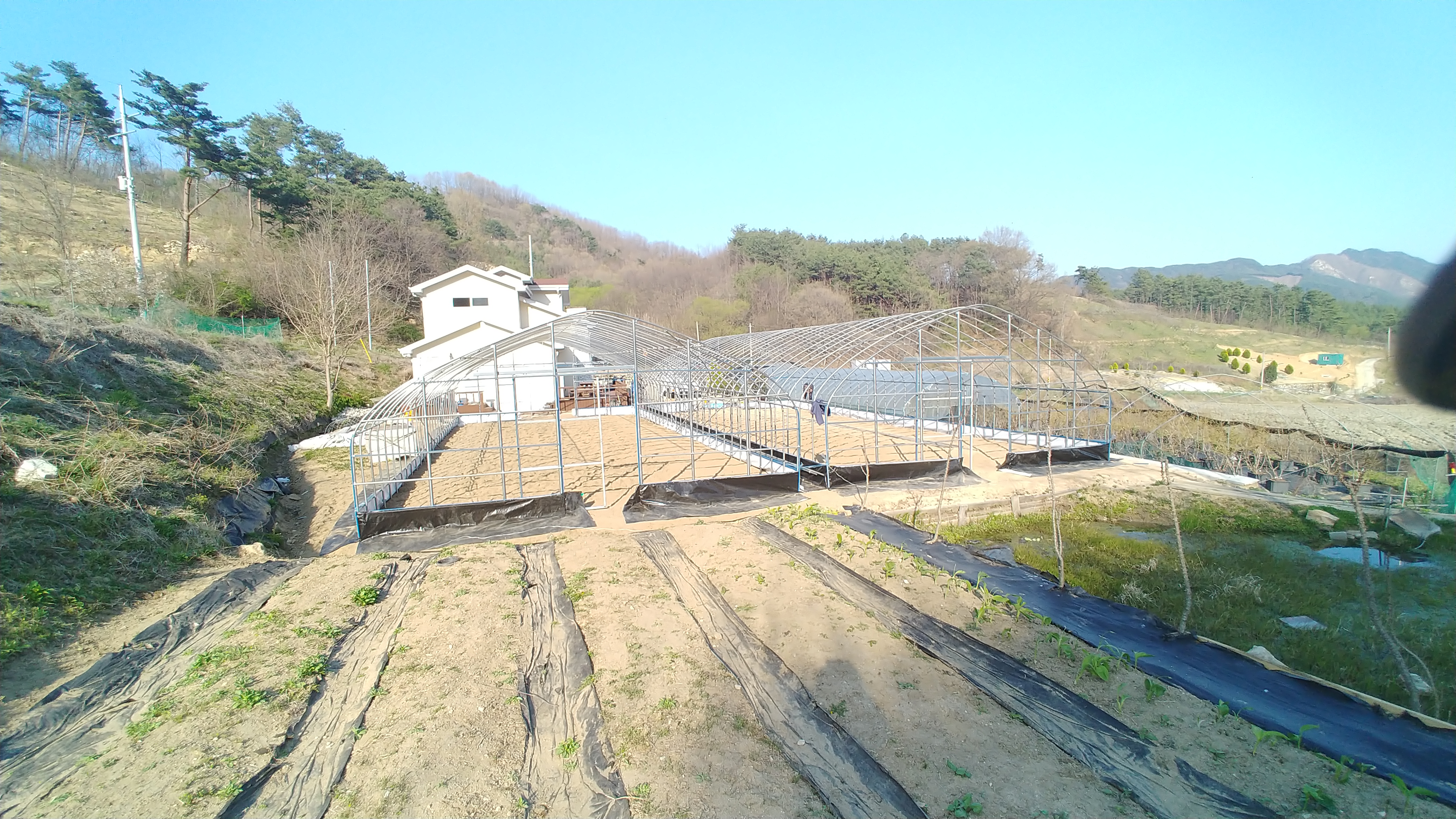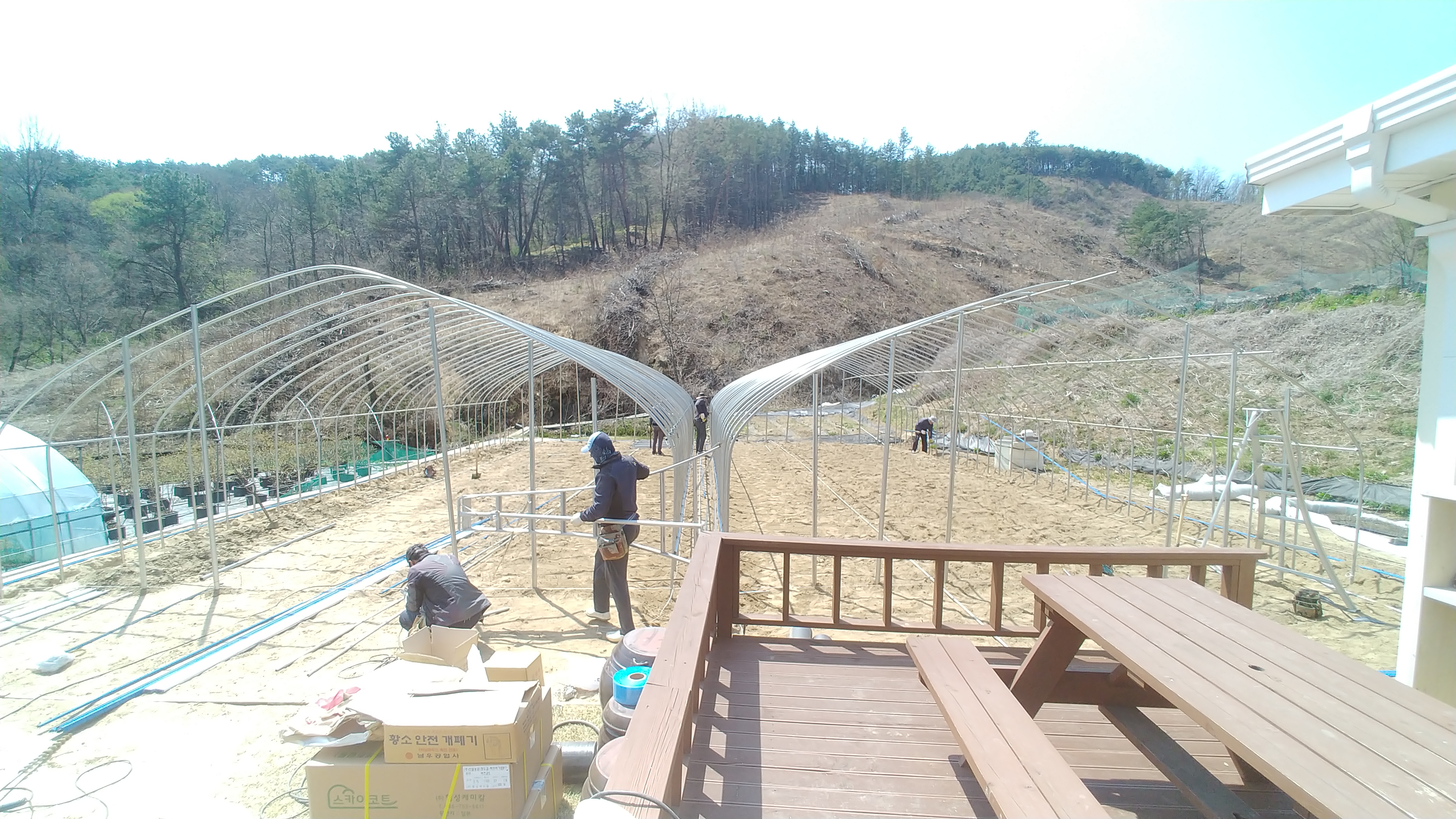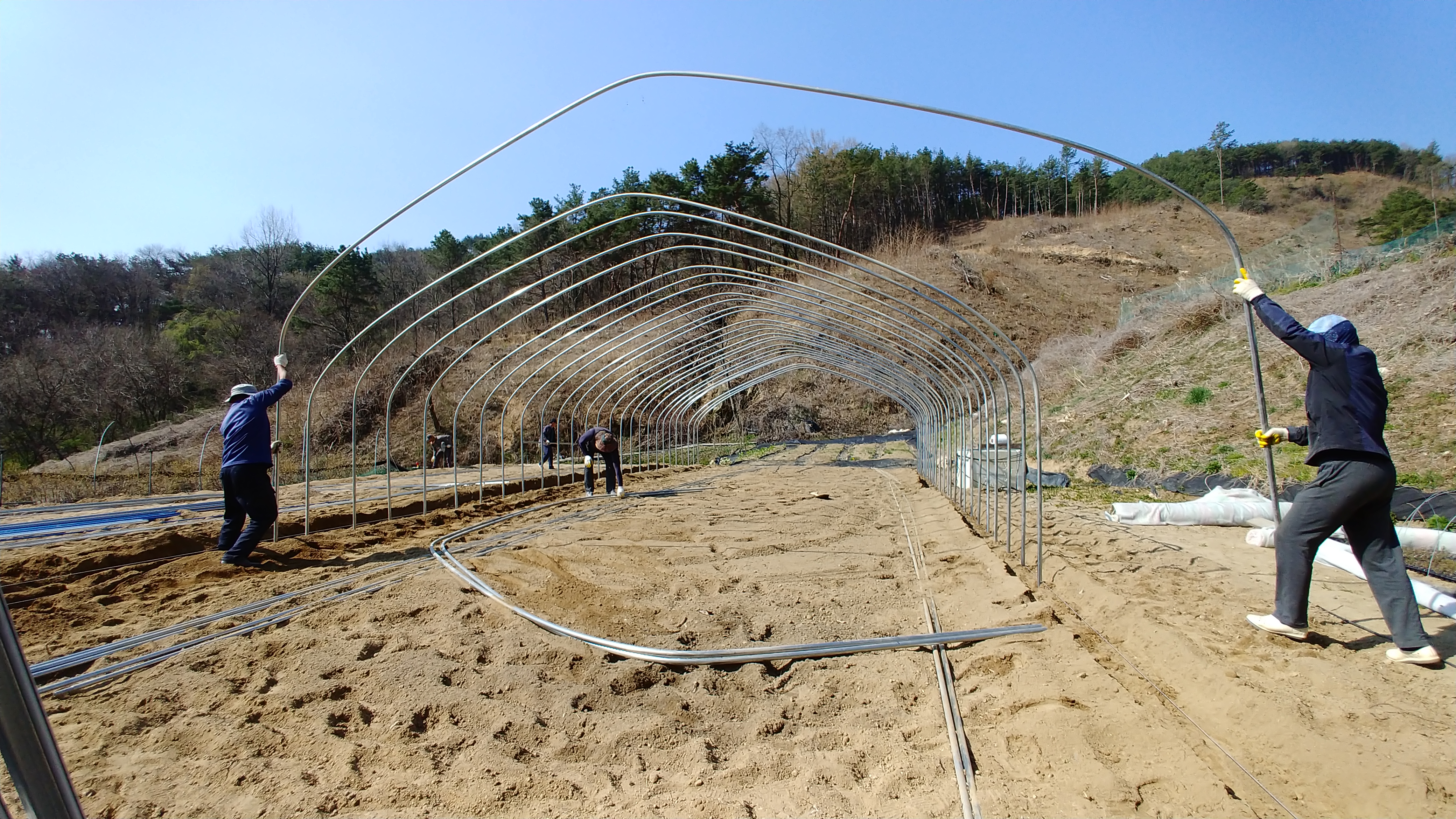 하룻만에 하우스 2개동을 설치하였습니다.