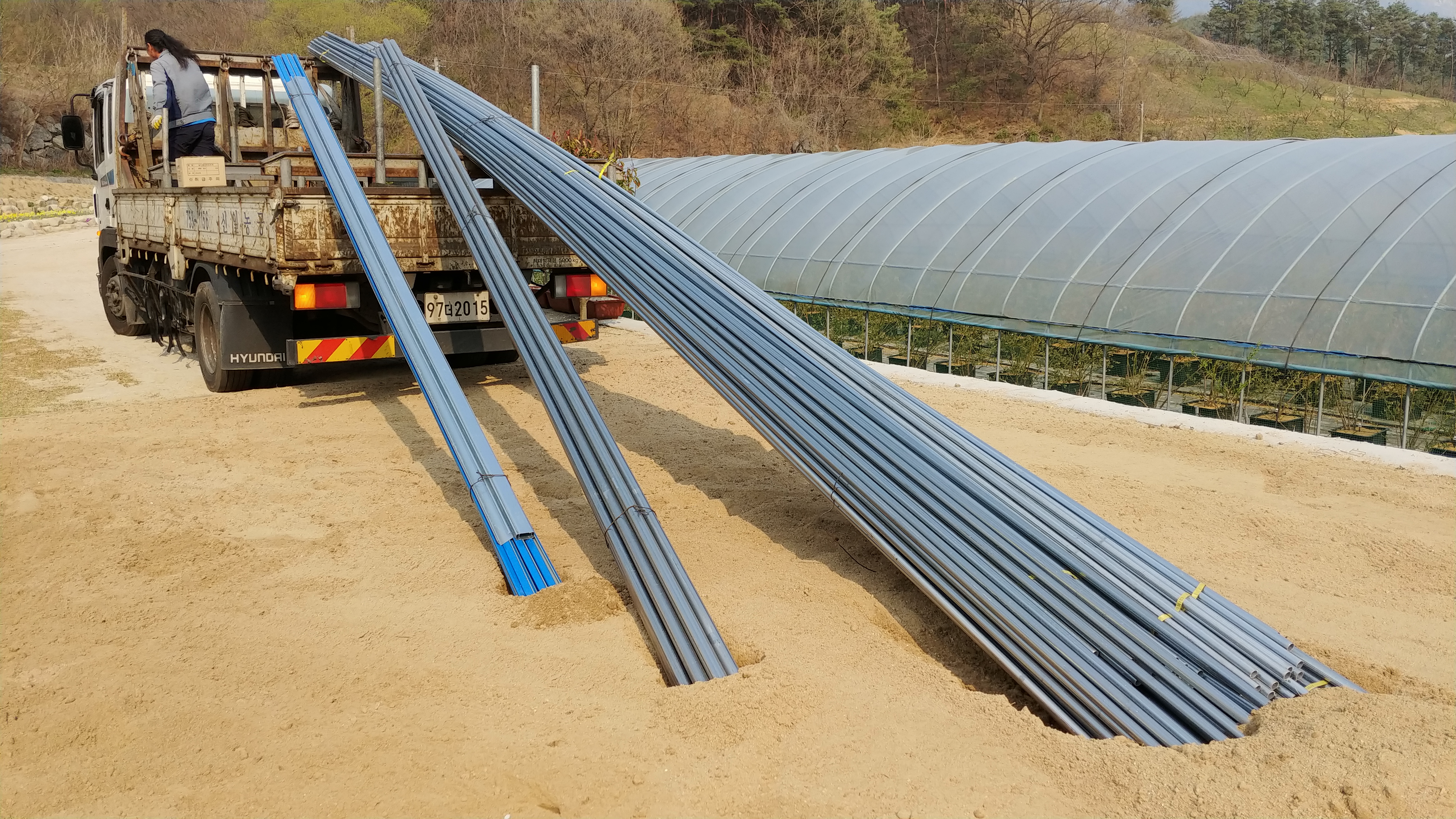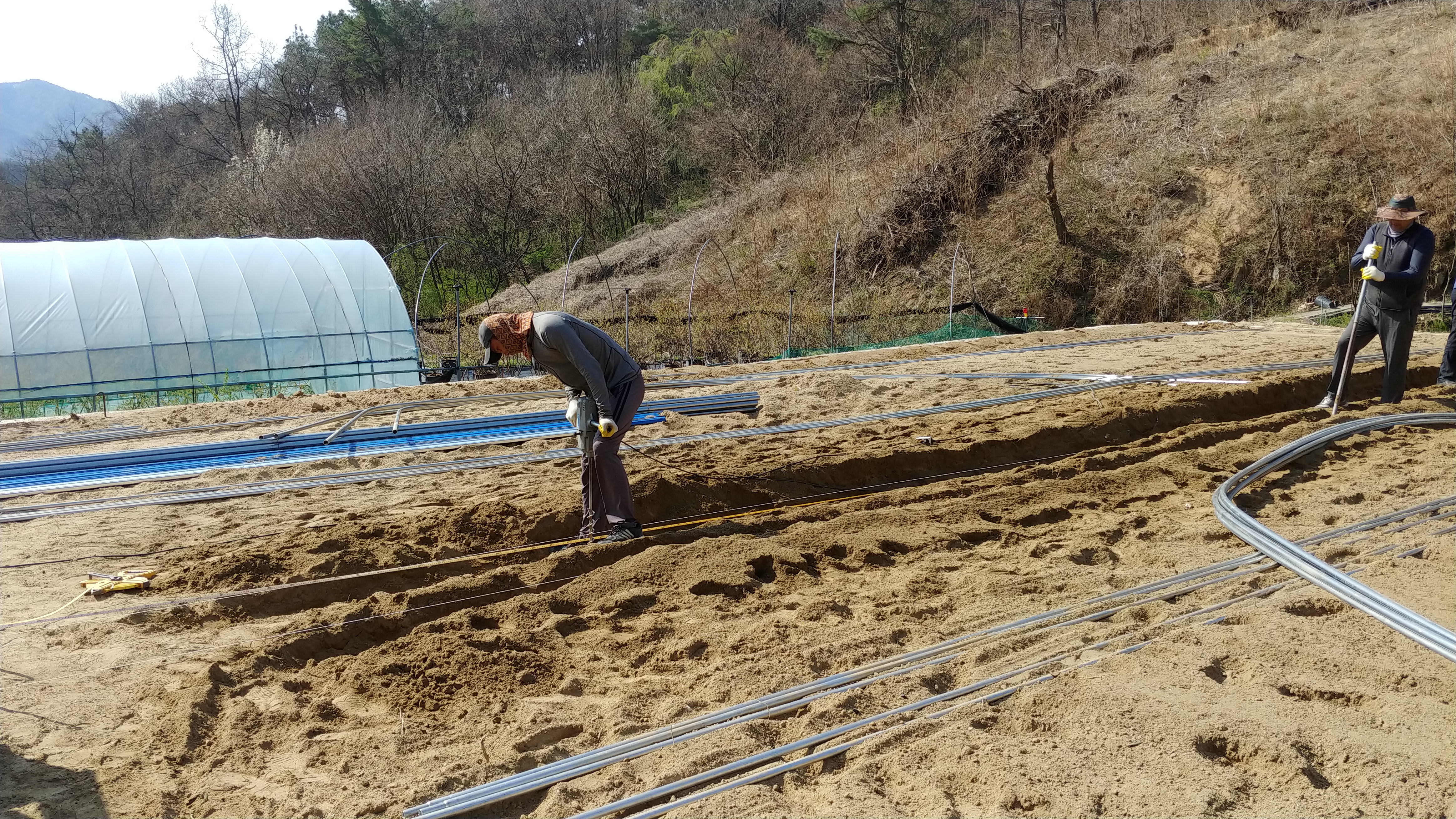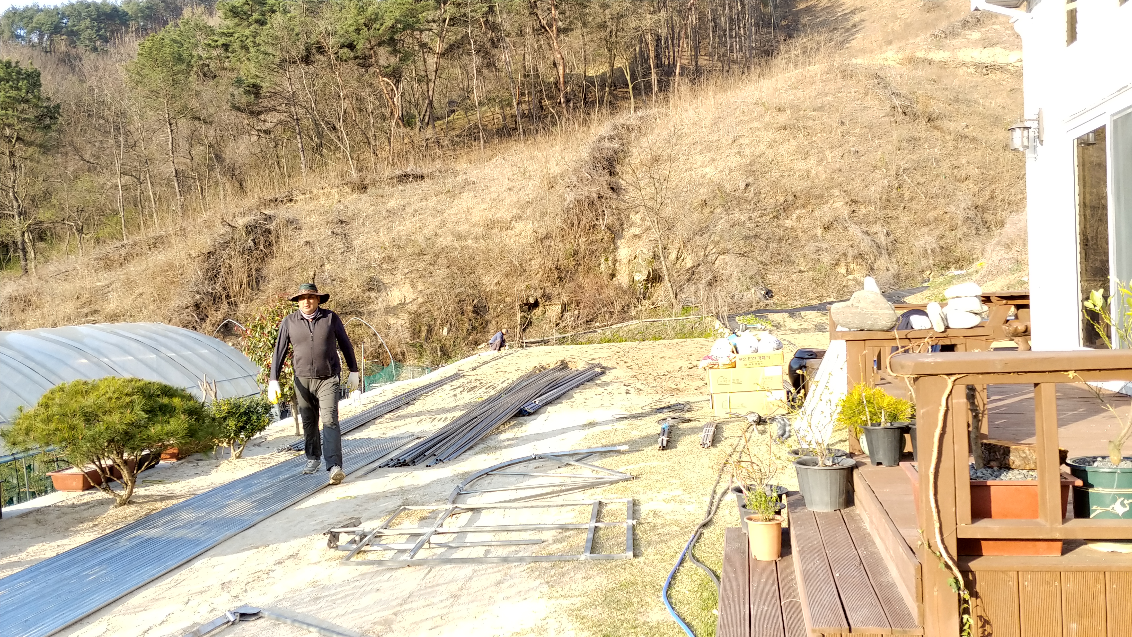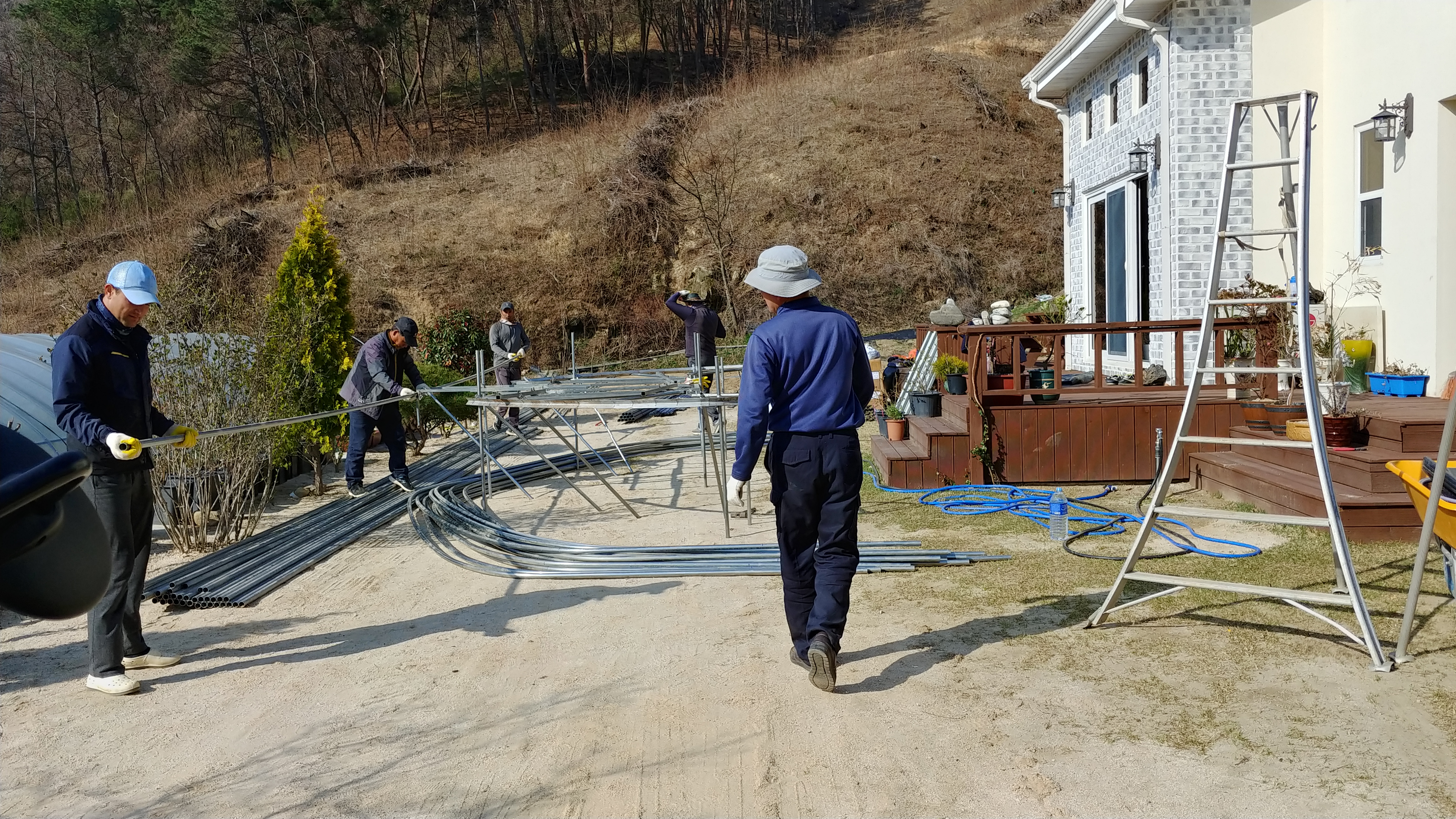 하룻만에 하우스 2개동을 설치하였습니다.