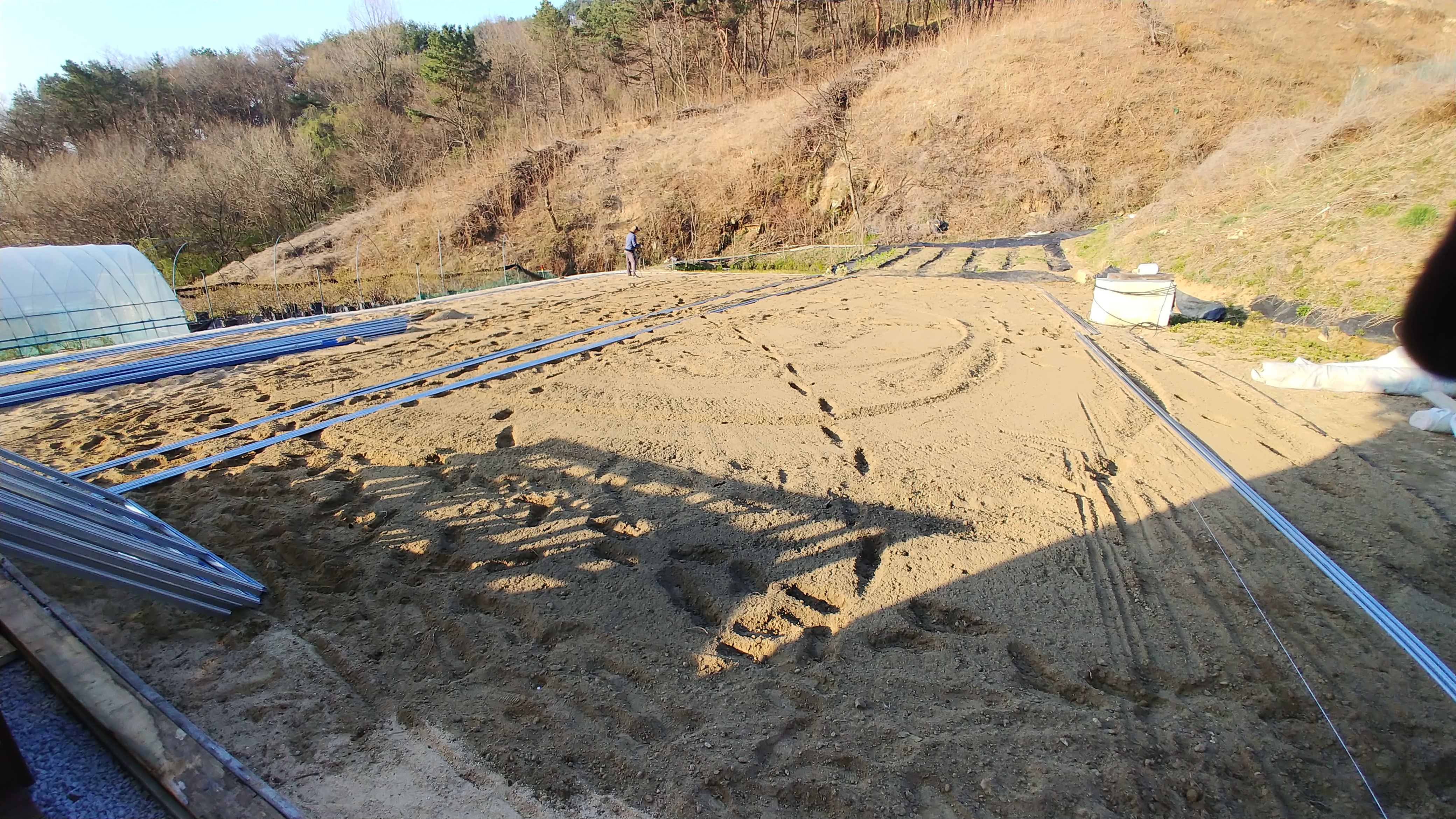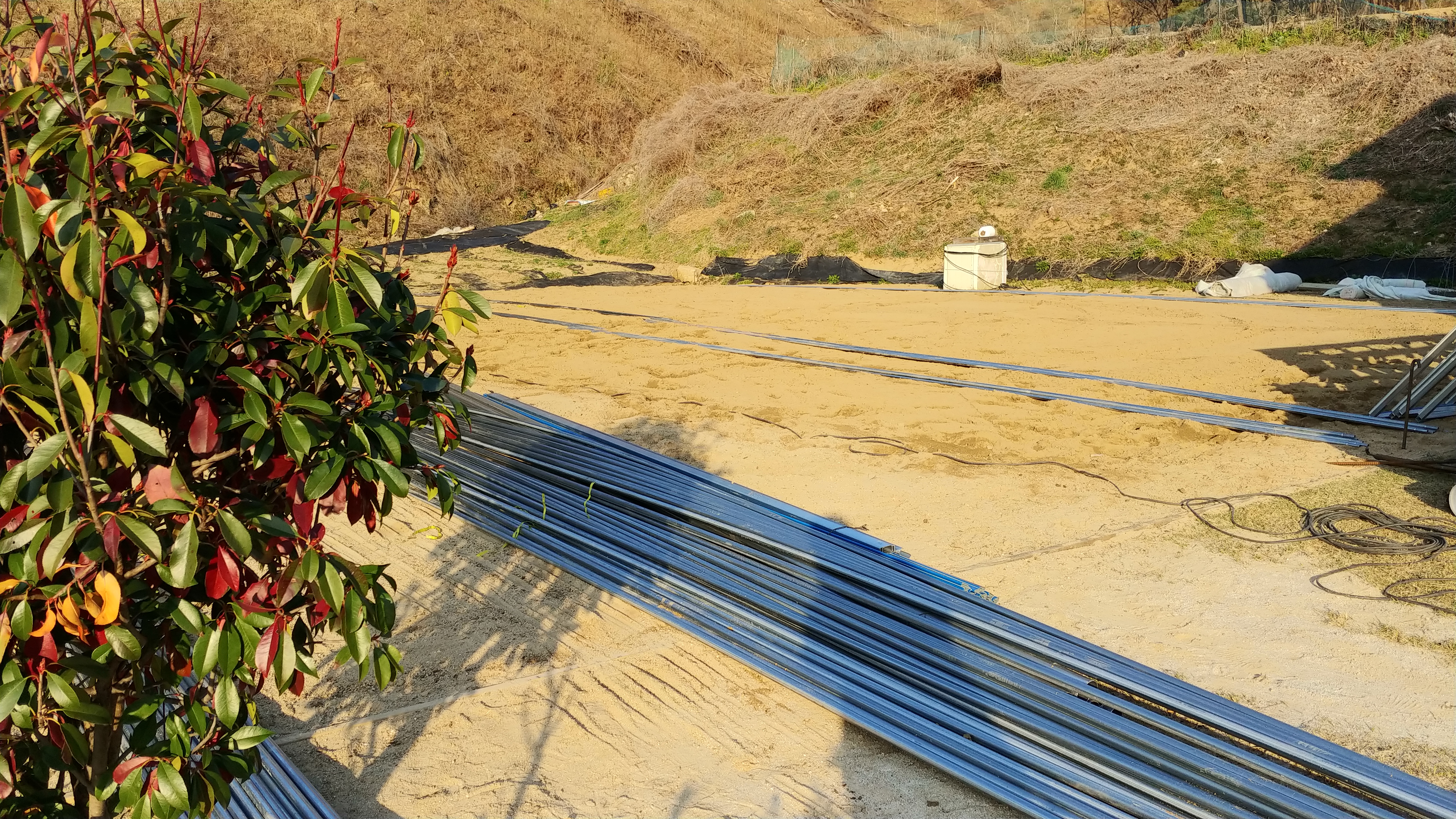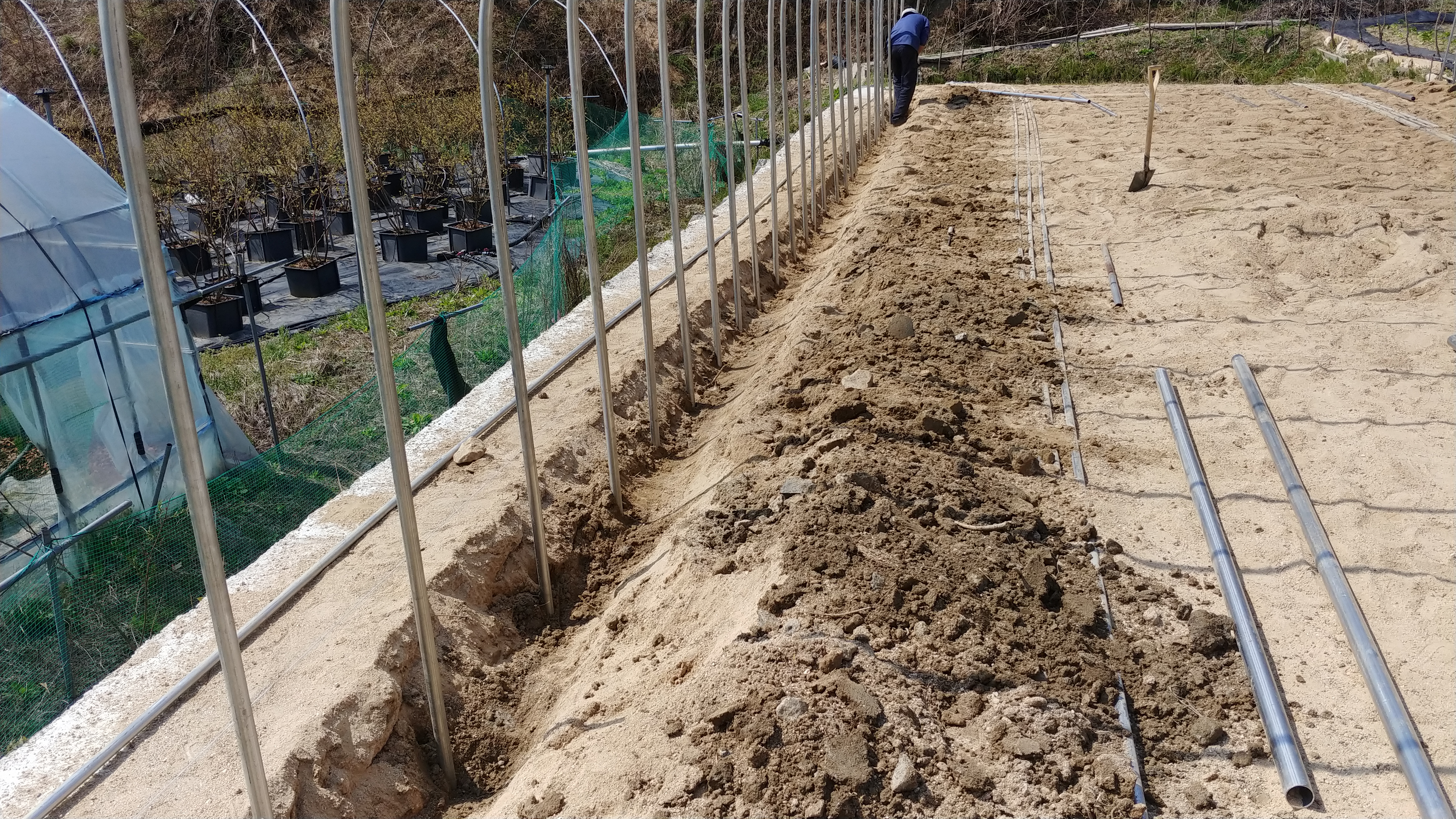 블랙커런트 묘목을 심었던 자리에 나무를 뽑아내고 하우스를 설치하였습니다.