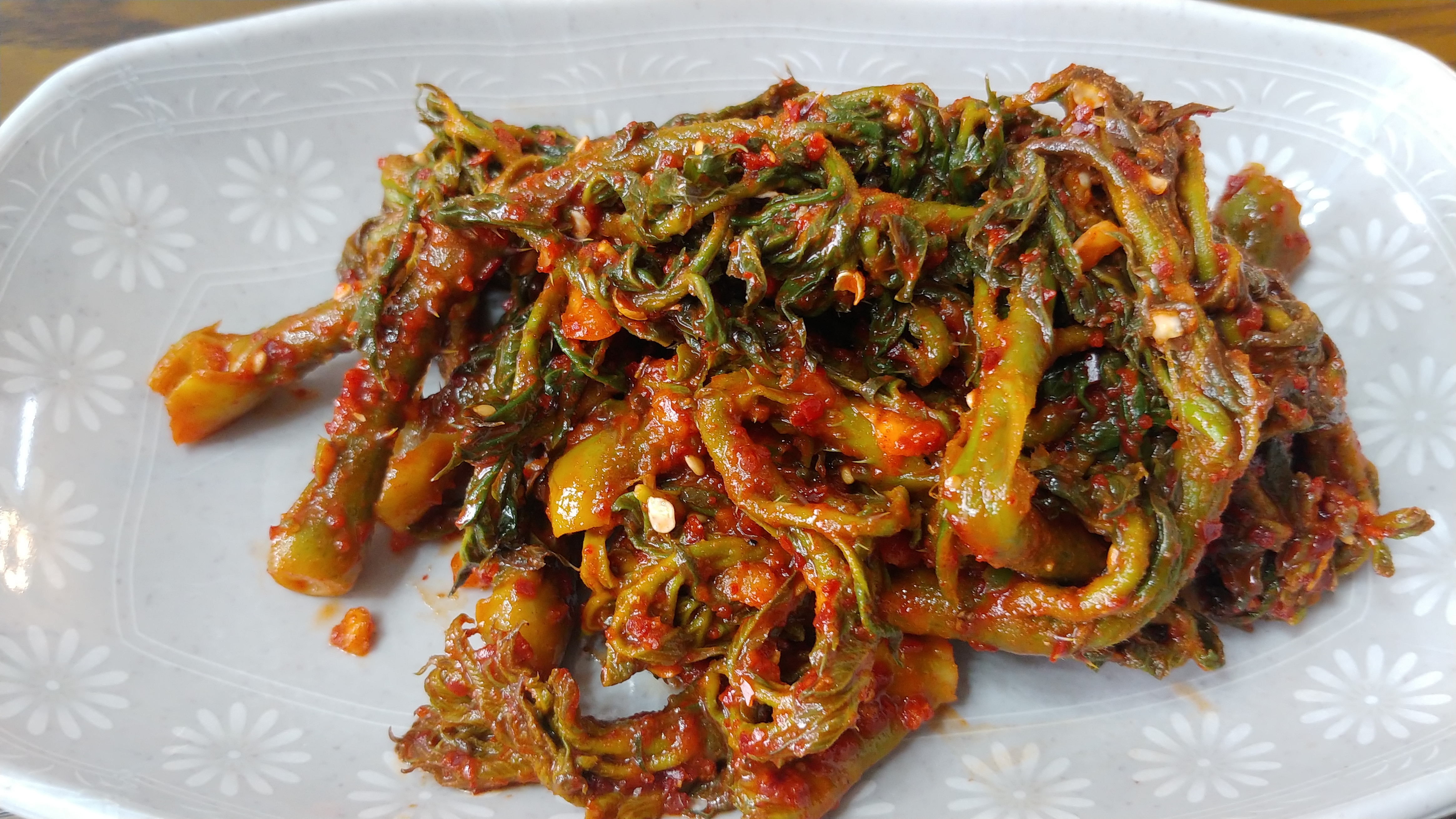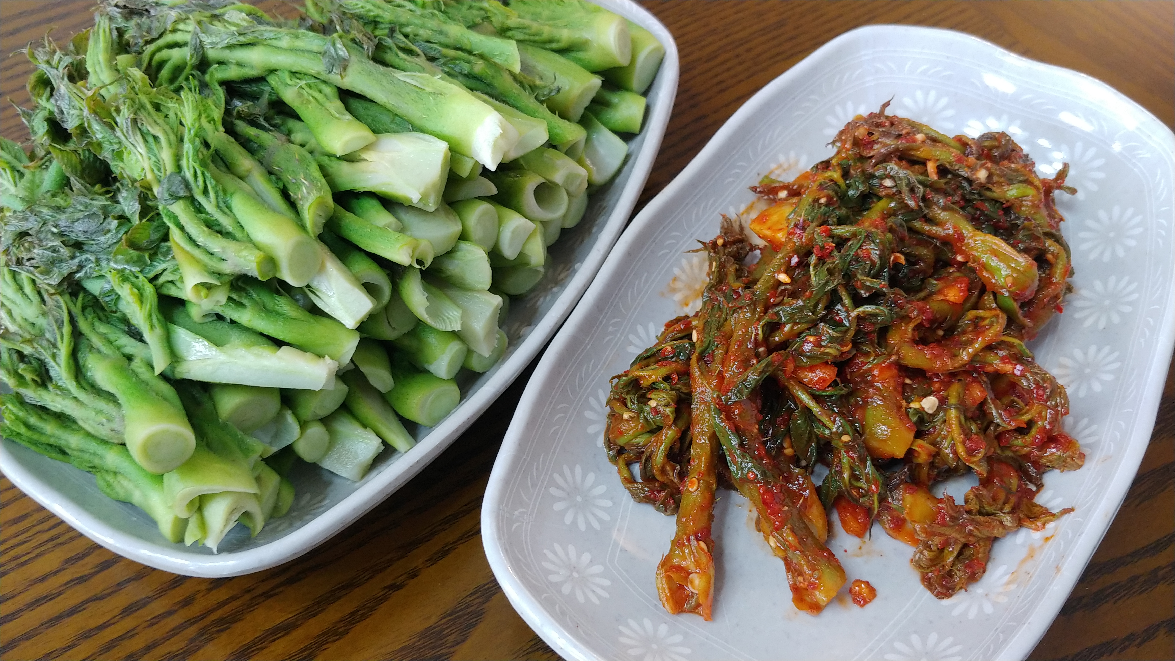 하여 뜨거운 물에 데쳐 고추장 무침을 바롯하여 전을 만들고 나머지는 된장에 찍어 먹었습니다.