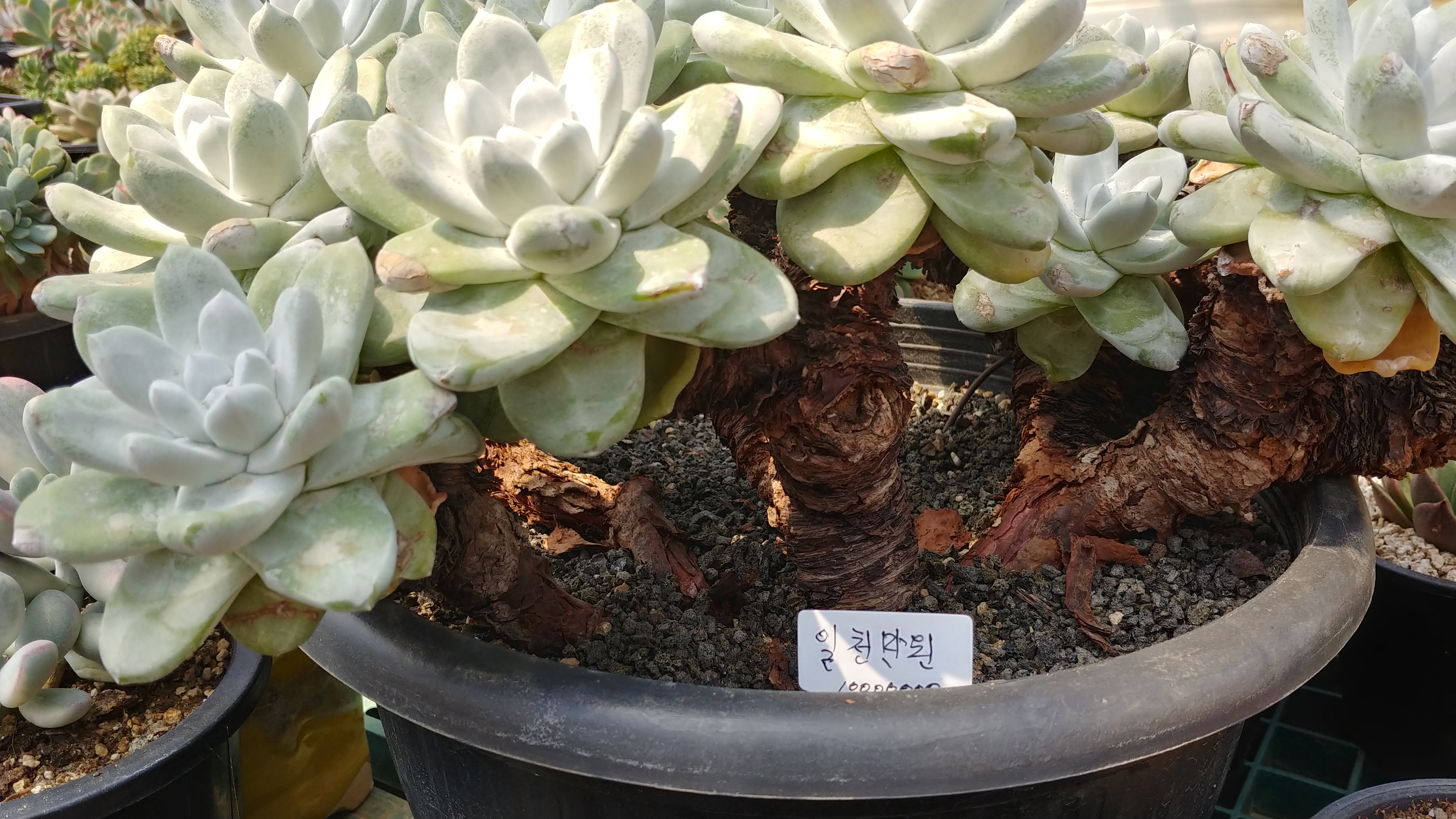 오늘 다육 농원에 들렀는데, 이름표에 붙은 가격이 1천만 원이라고 적혀 있습니다.