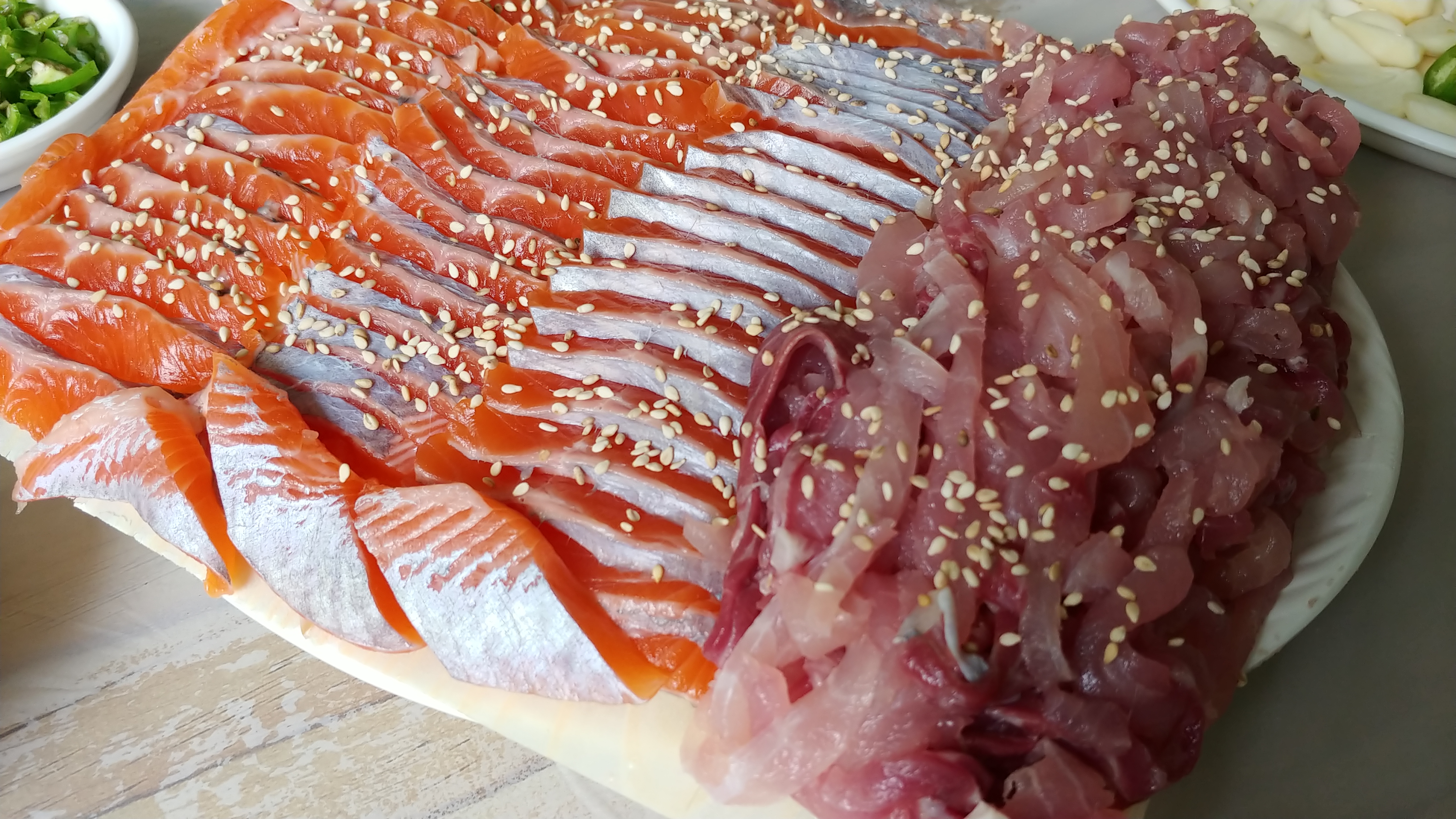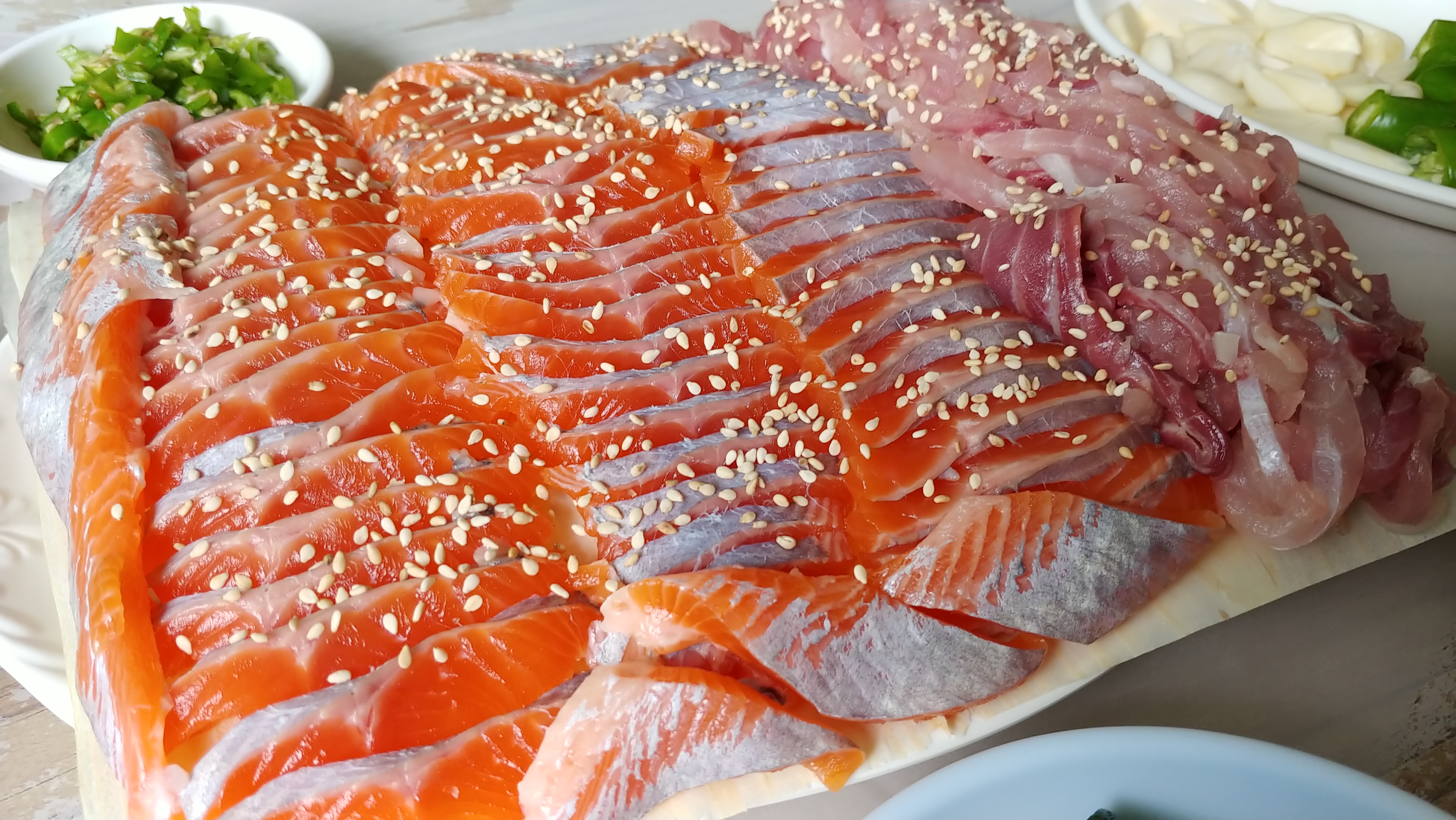 지인과 함께 먹는 송어회 한 접시는 작은 행복을 넘어 큰 기쁨을 안겨 주었습니다.