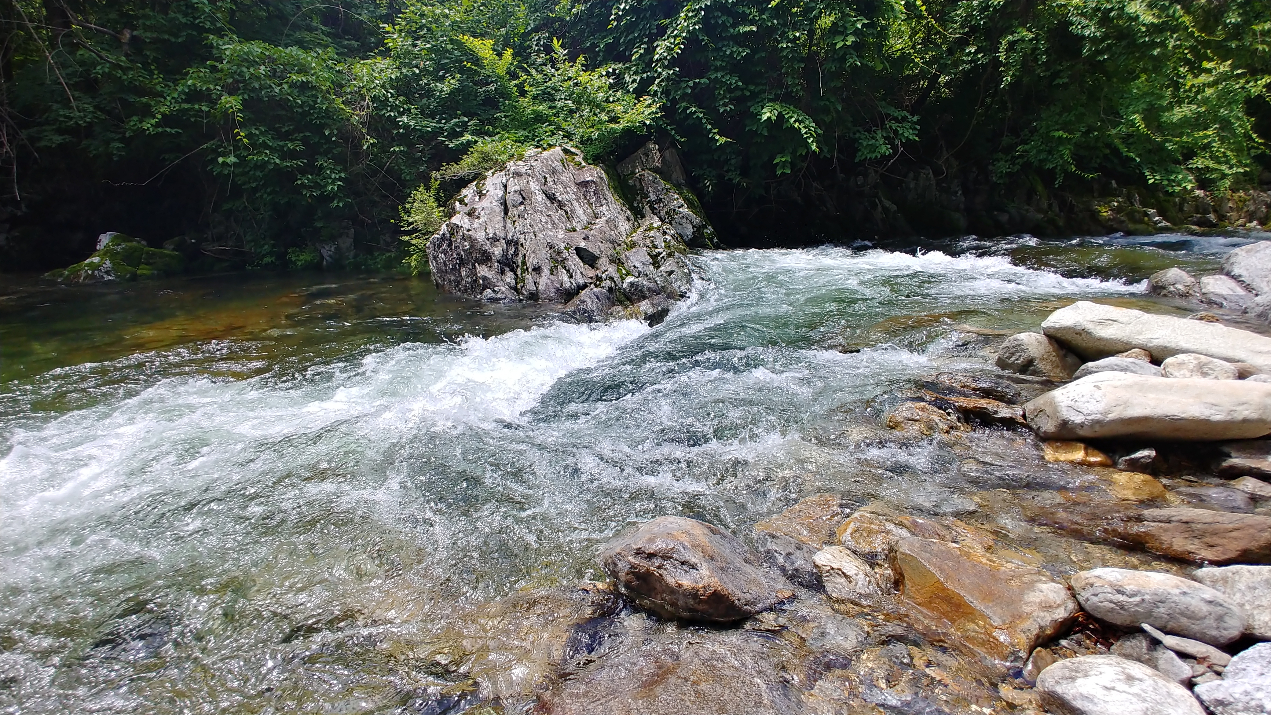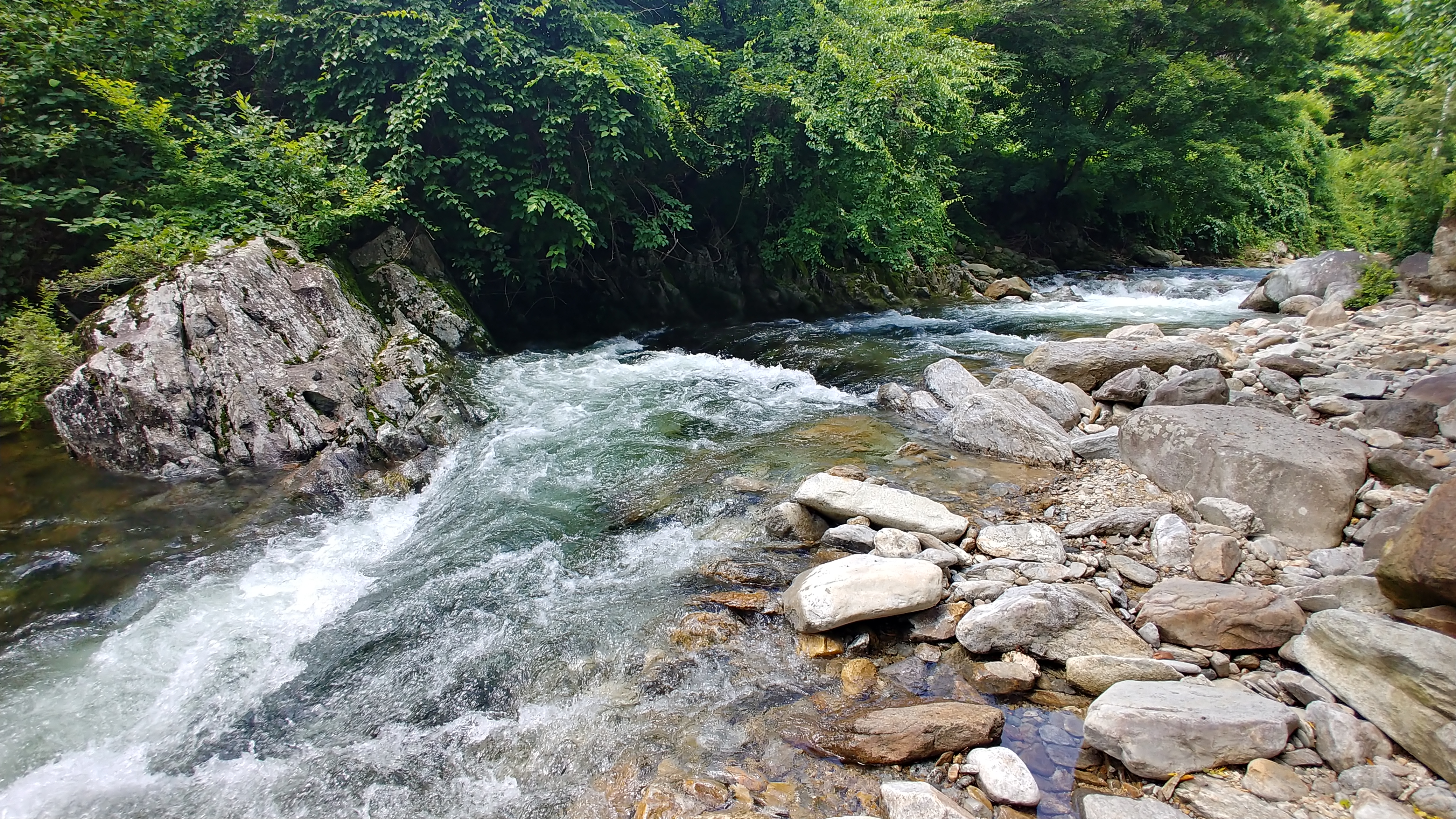 이 계곡은 높은 산에서 흘러내리는 물로 1년 내내 마르지 않고 흘러 내립니다.