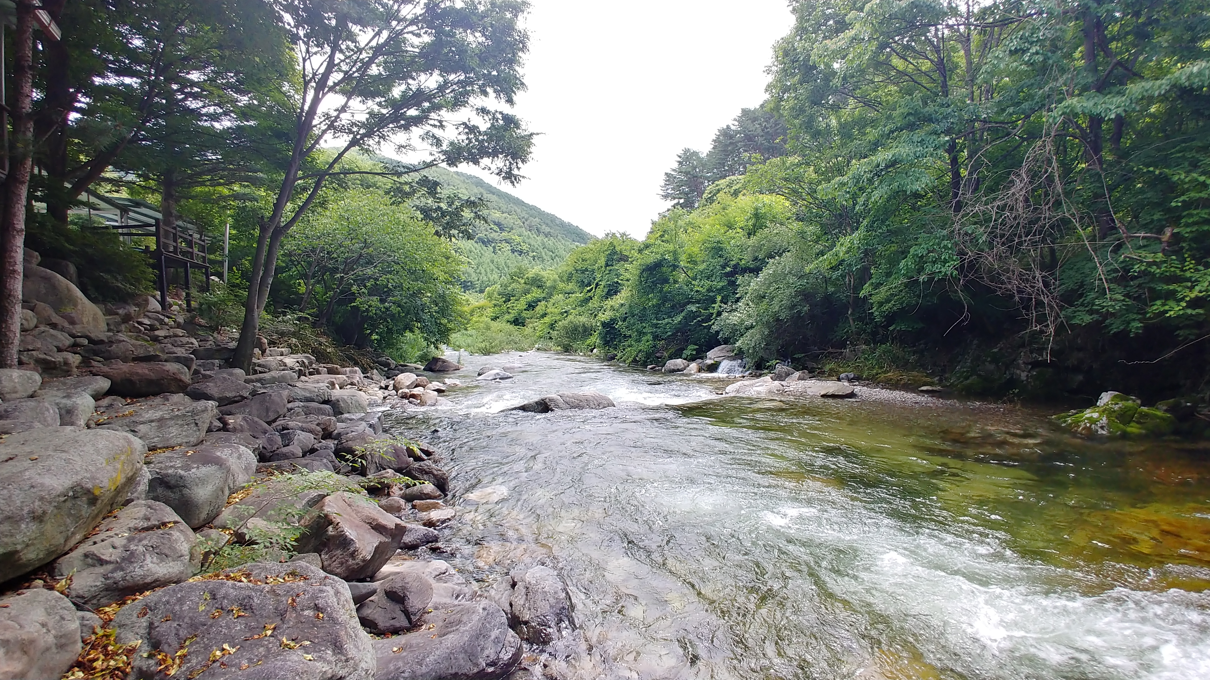 계곡 언덕에 있는 송어횟집 평상에 앉아 시원한 계곡물 흐르는 소리를 들으며 기분 좋은 시간을 보냈습니다.