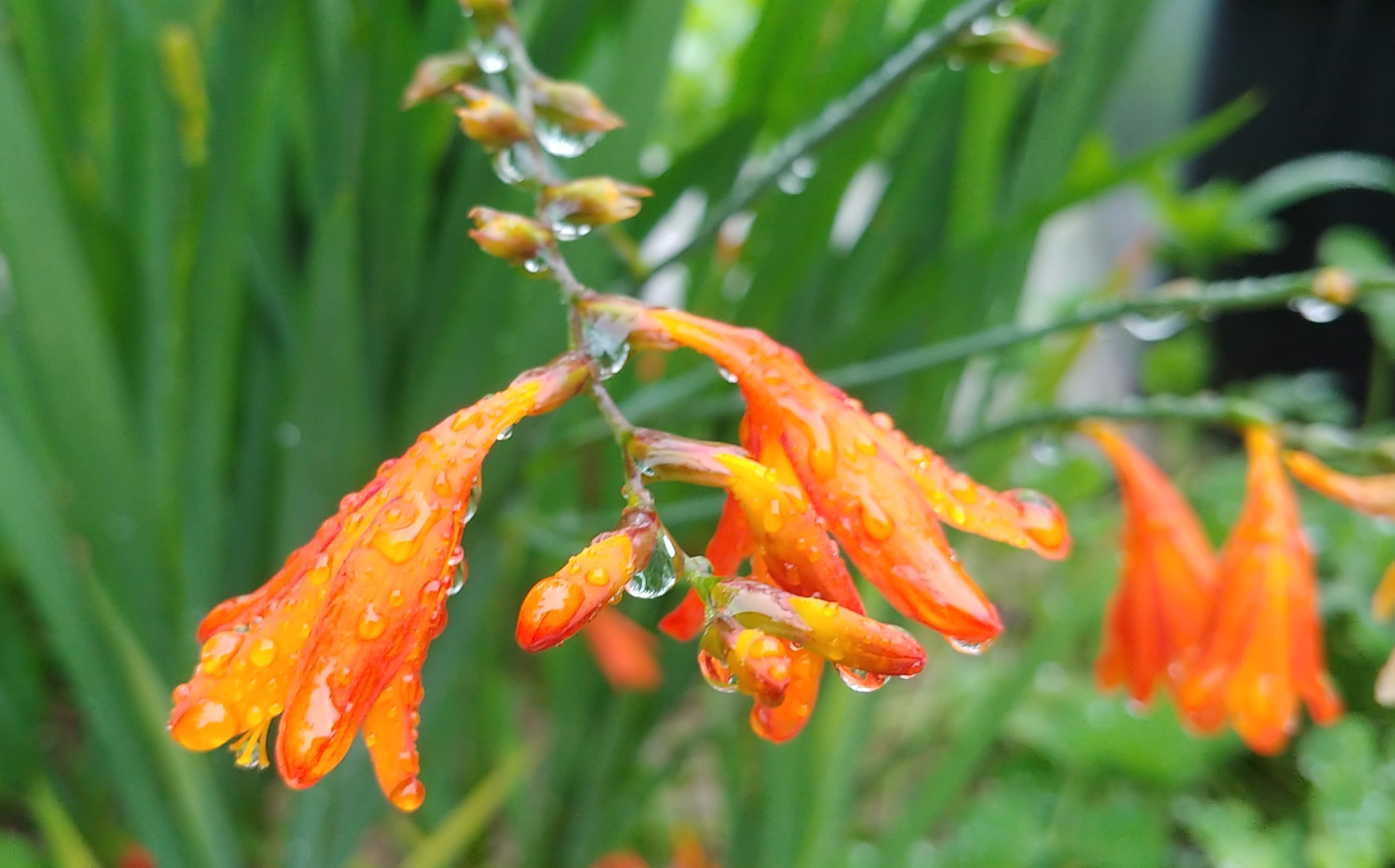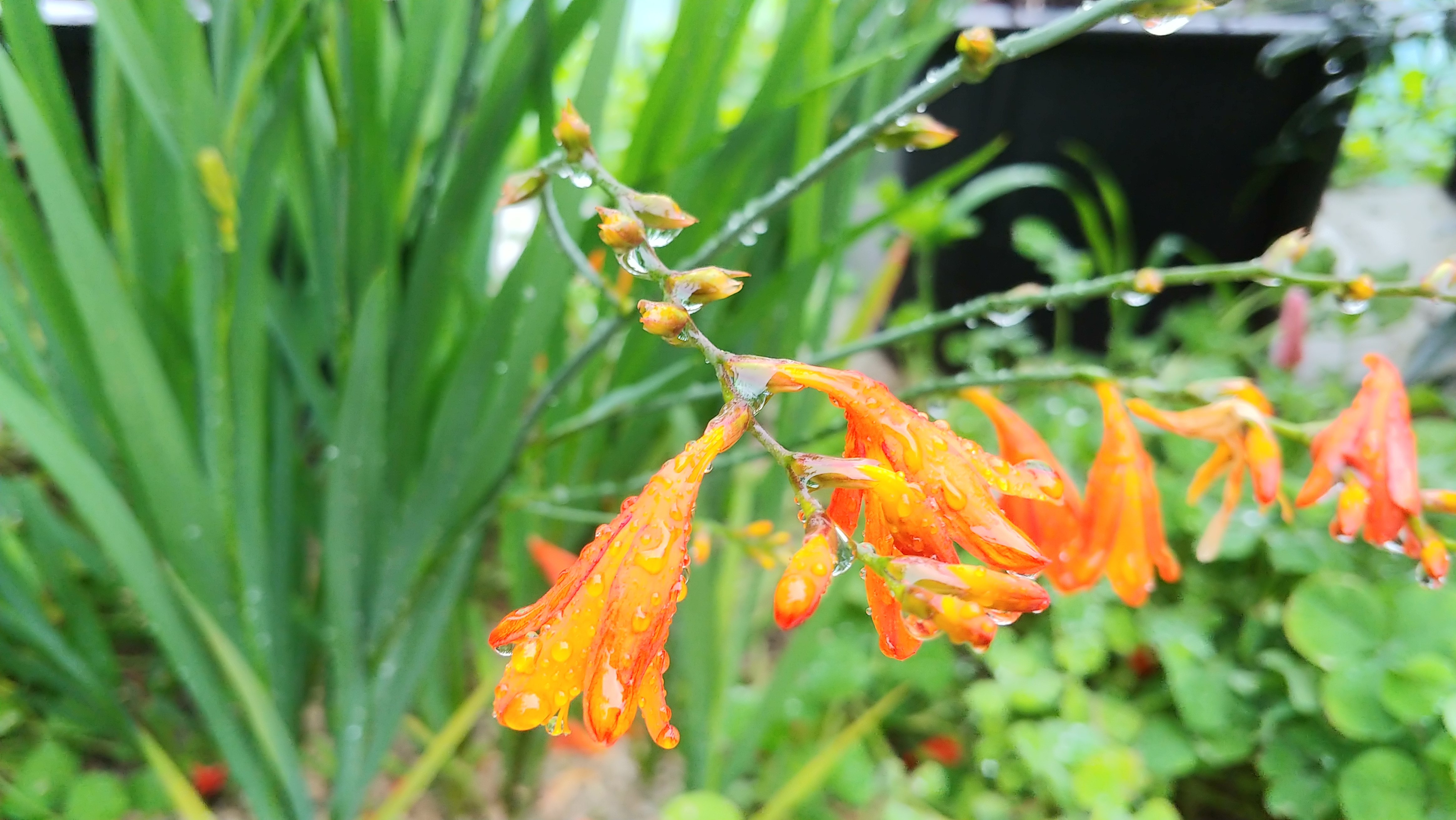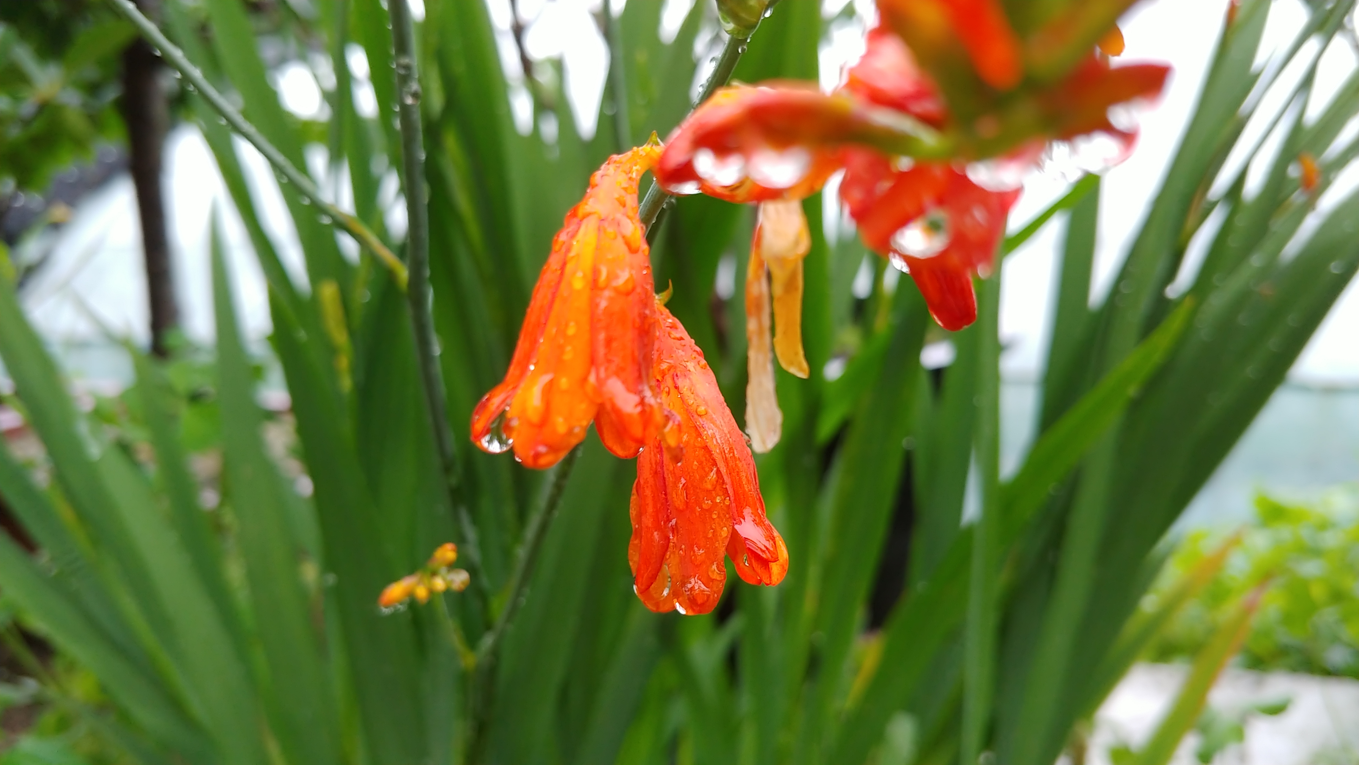 빗방울을 흠뻑 멎은, 7월~8월에 피는 야생화 애기범부채 꽃입니다.