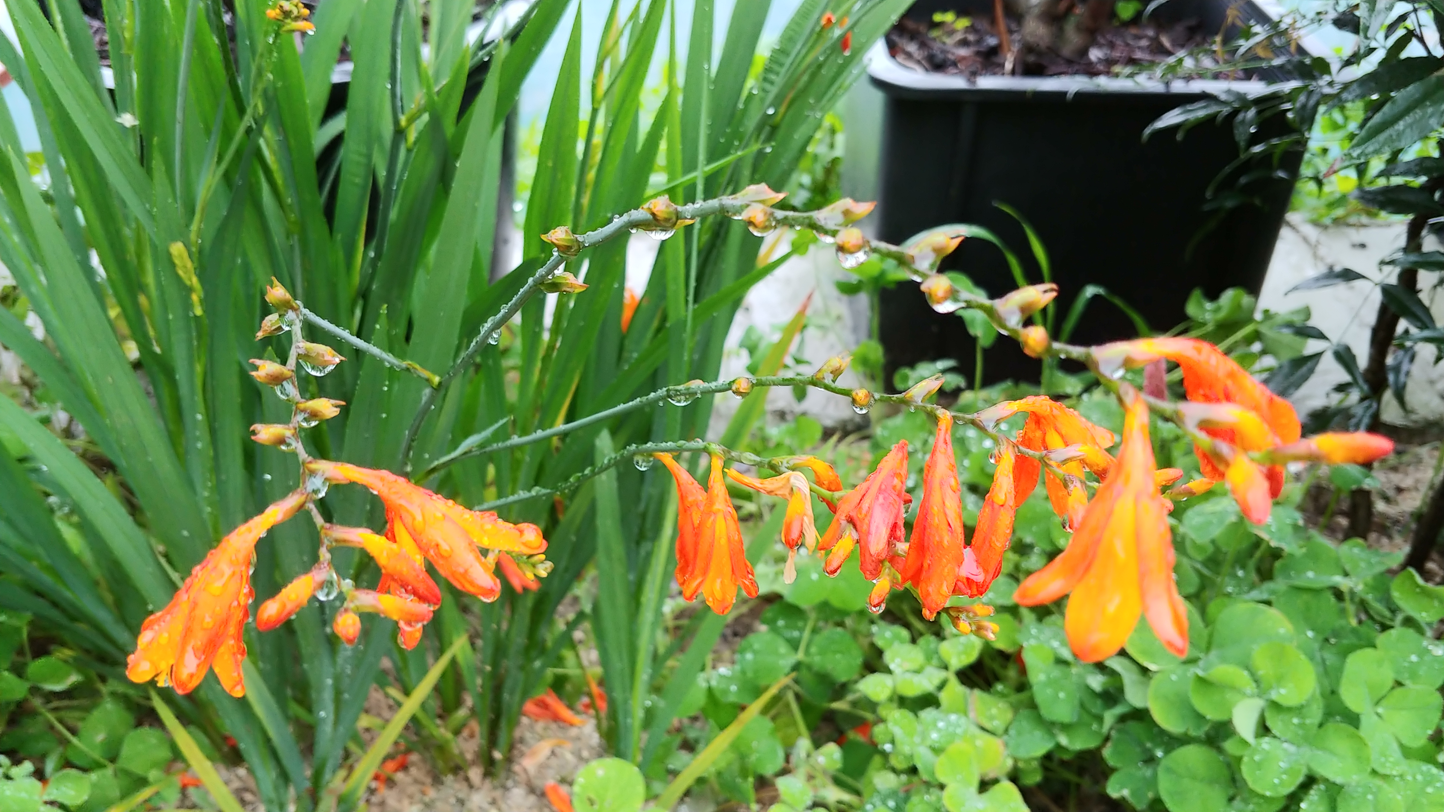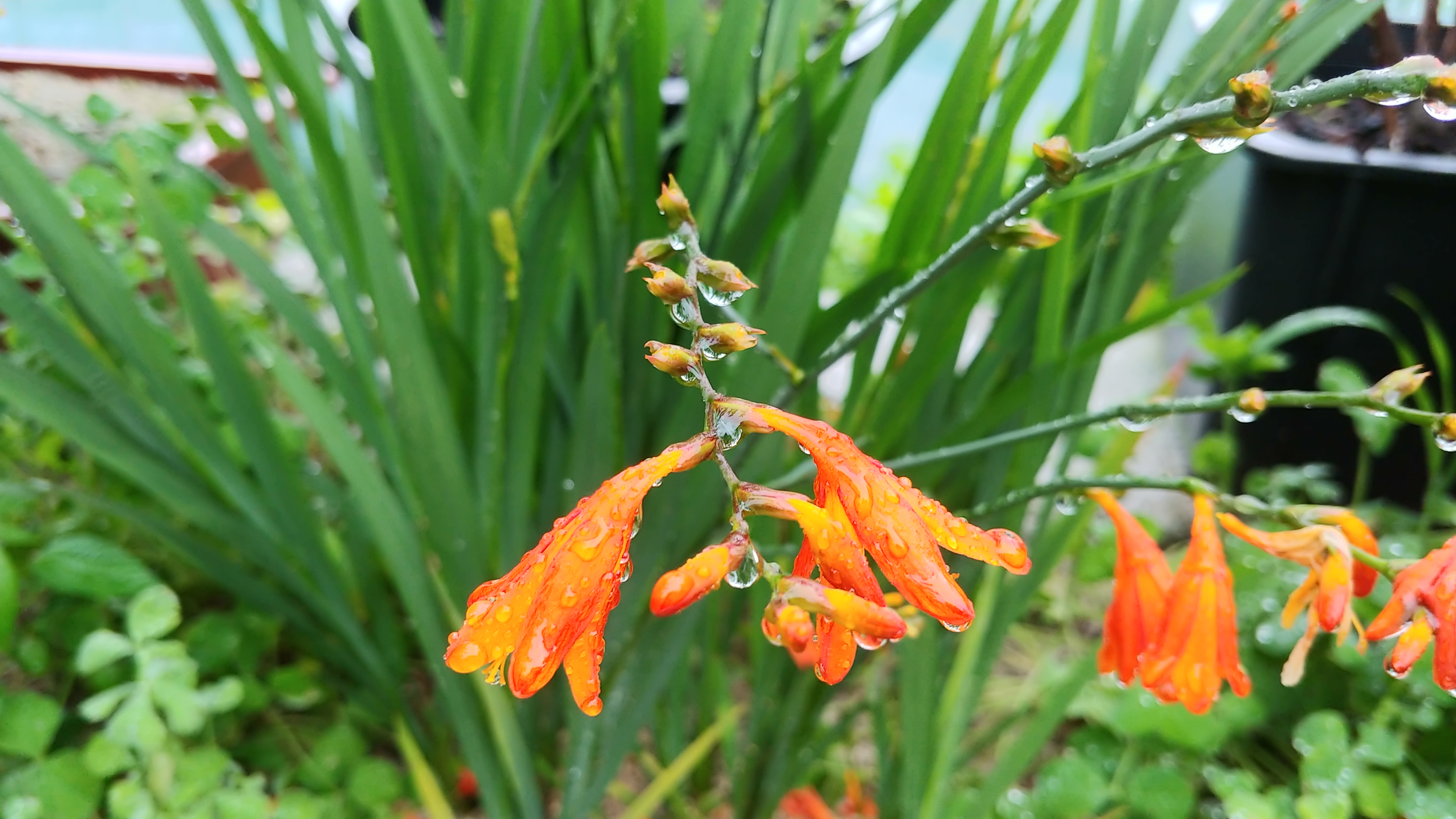며칠동안 계속되는 장맛비에 젖은 애기범부채꽃이 청순함을 자랑하면서도 애처로운 모습이 느껴집니다.