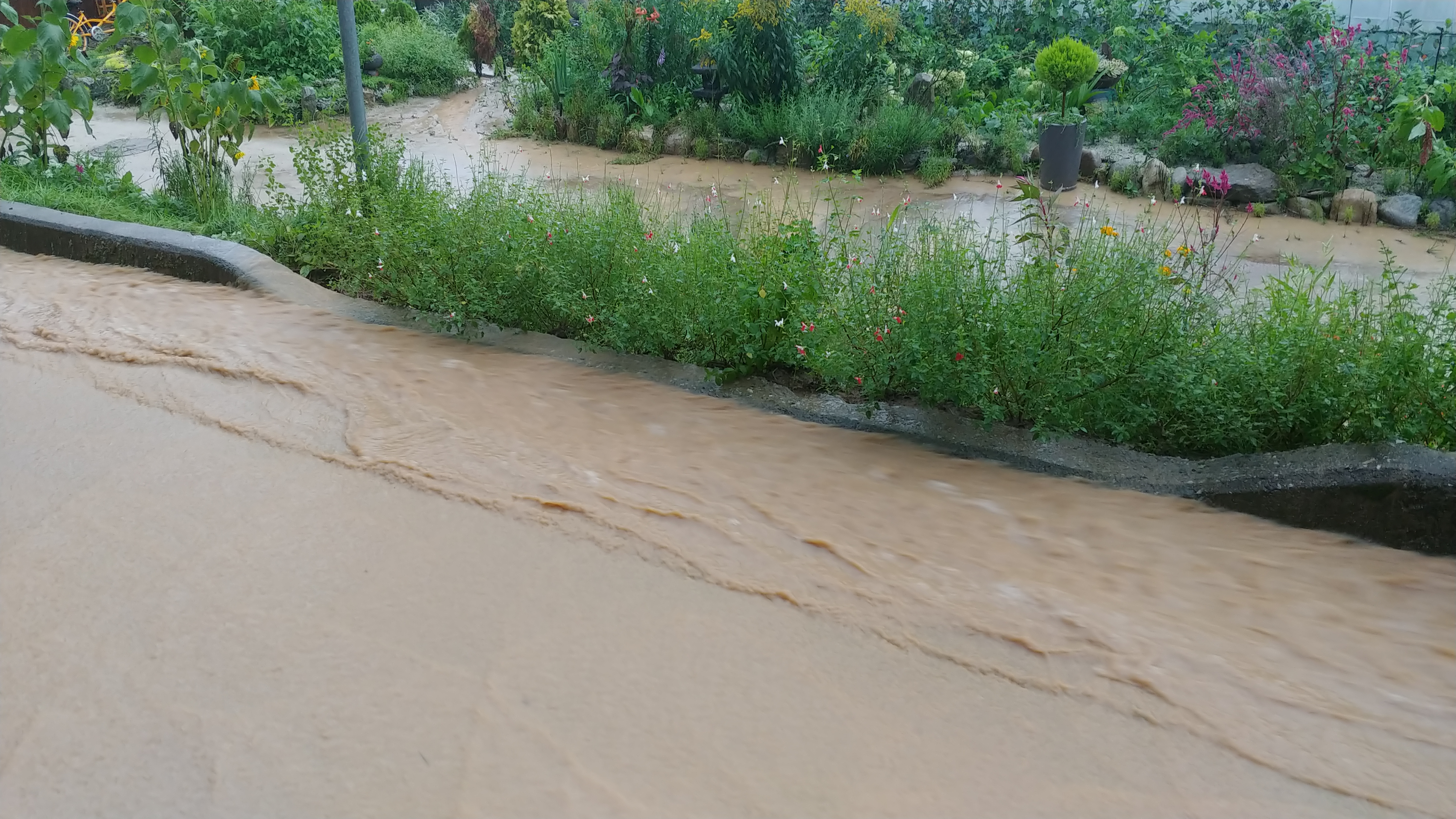 도로를 넘친 흙탕물은 꽃밭을 쑥대밭으로 만들어 놓았습니다.