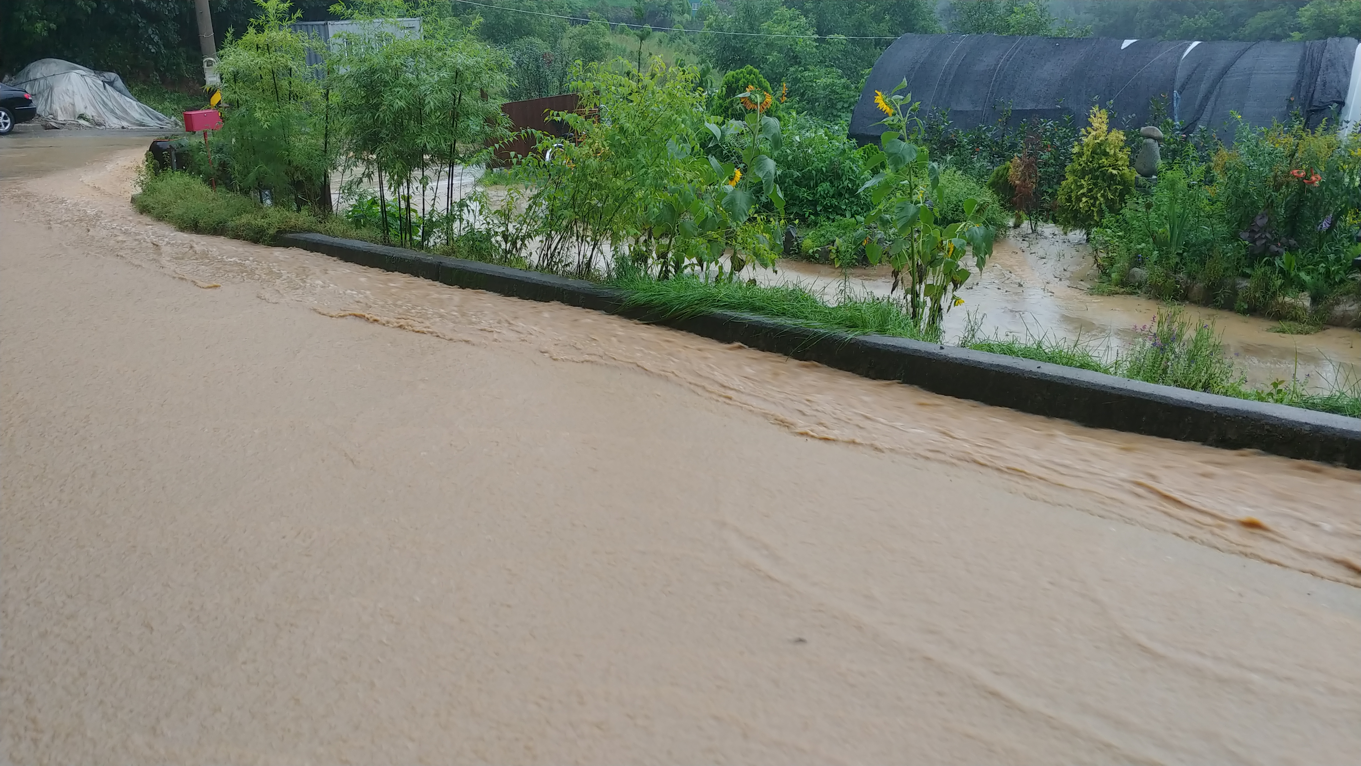 며칠전 준공한 집앞 세천은 물이 넘쳐 도로를 넘어 차량까지 밀고갈 기세입니다.