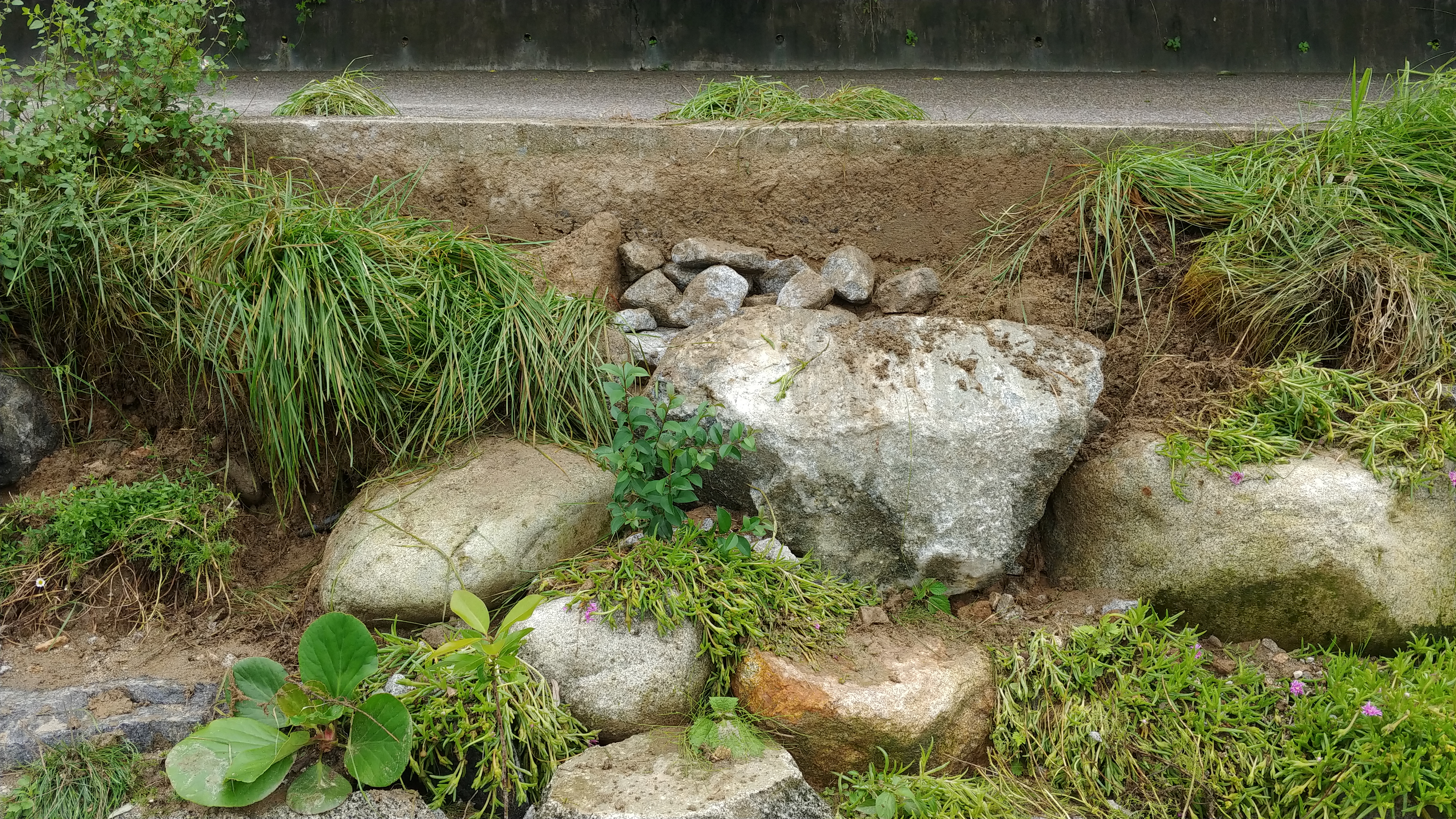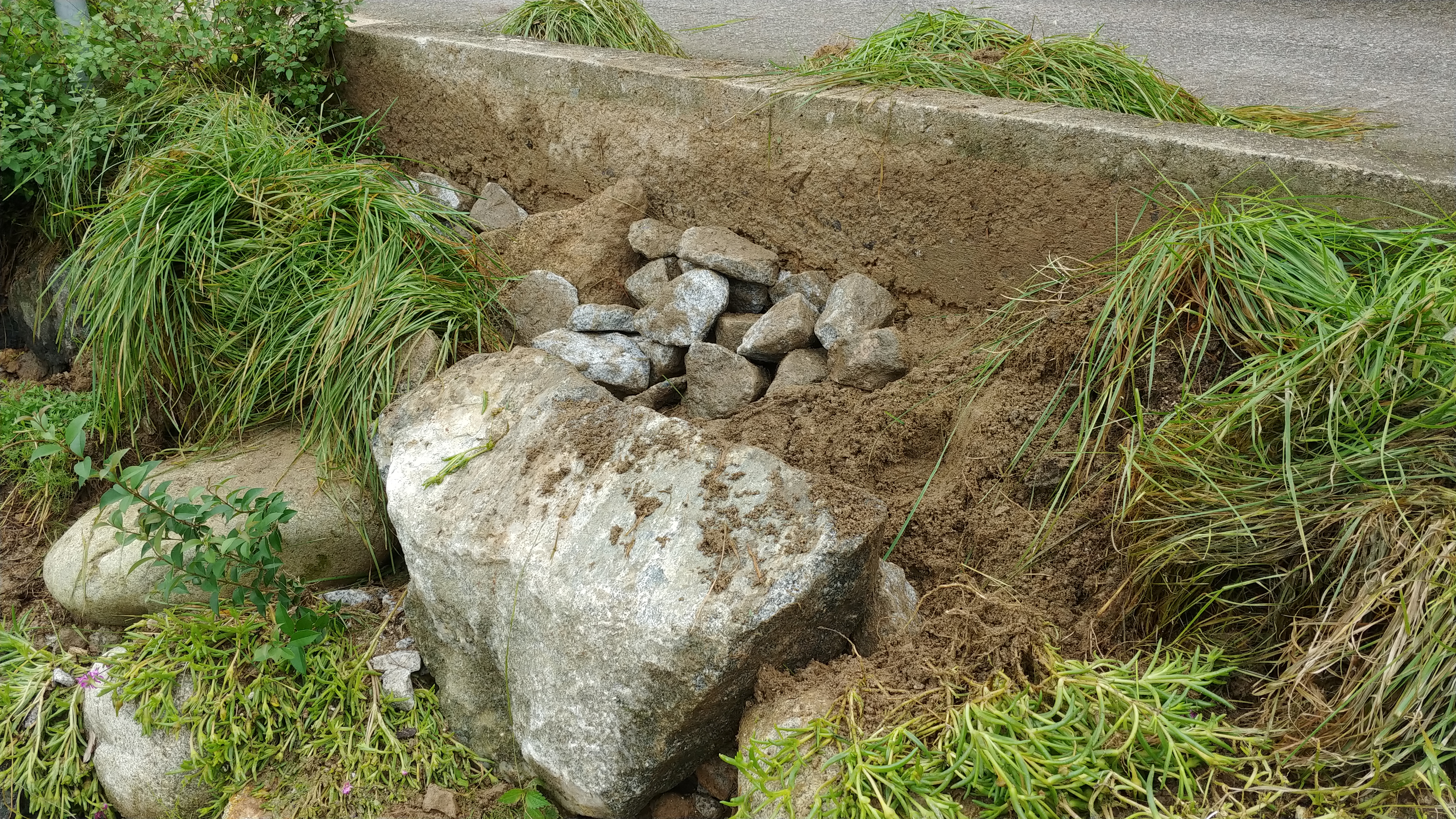 도로변 물이 넘쳐 언덕이 유실되고, 지난해 말 석축공사를 한 대는 군데군데 구멍이 났습니다.