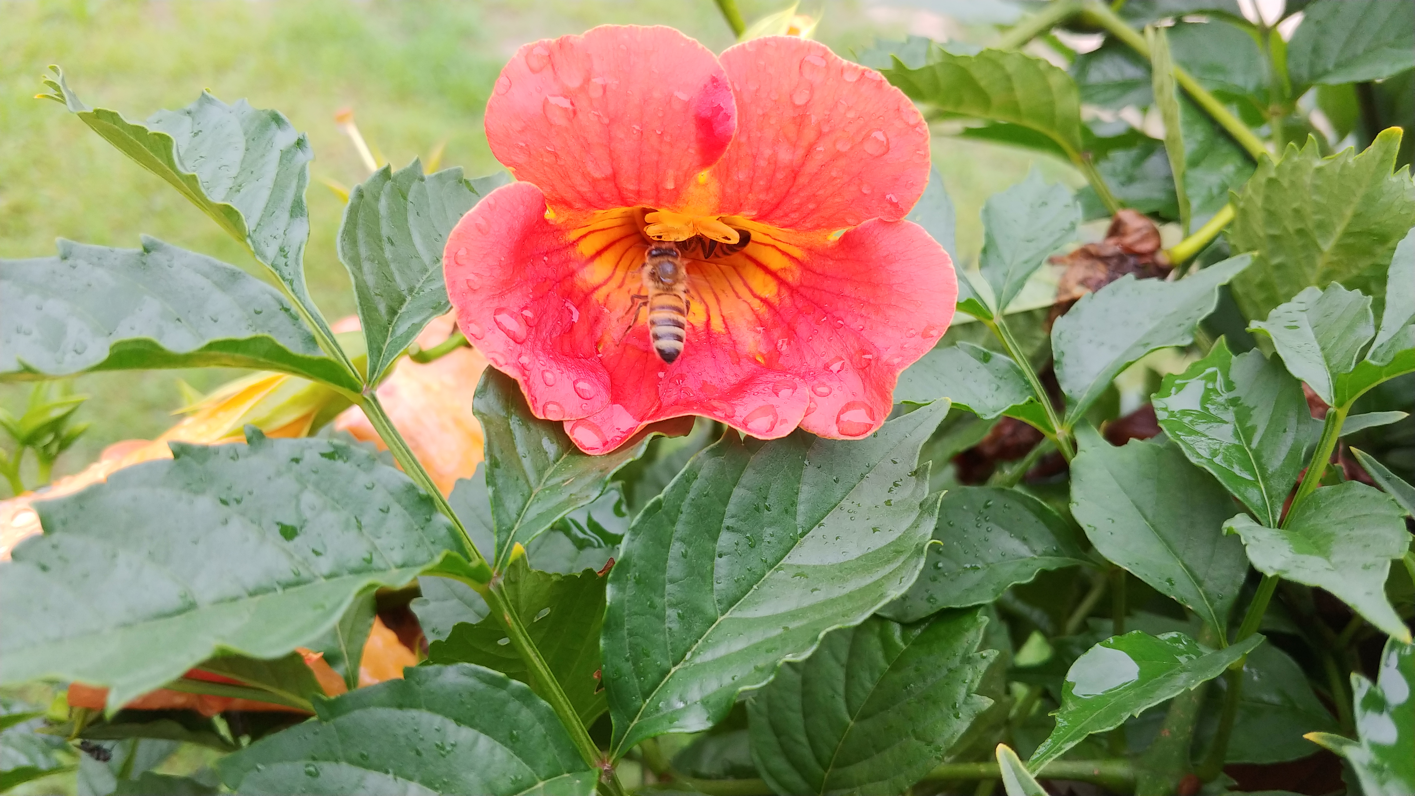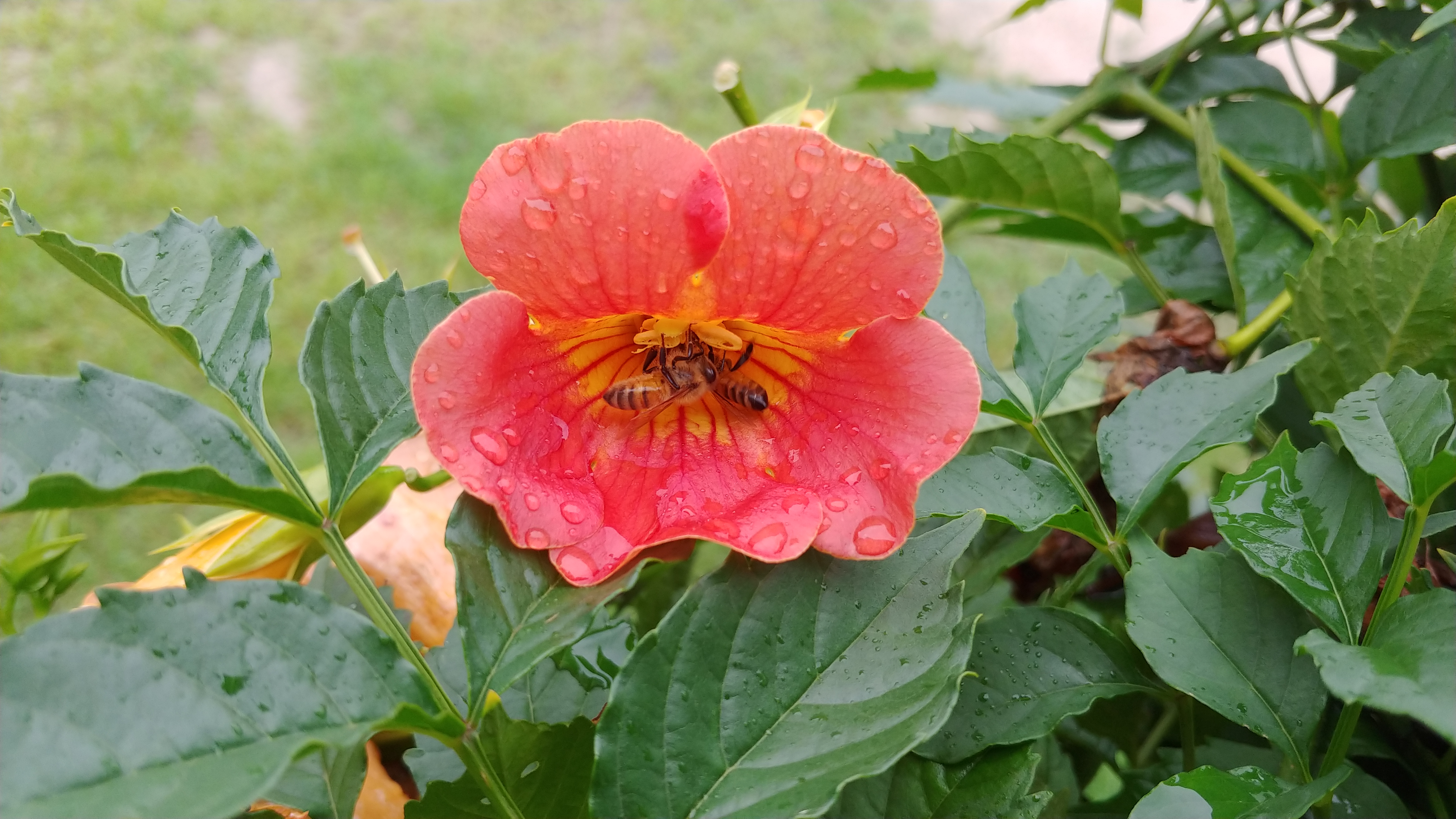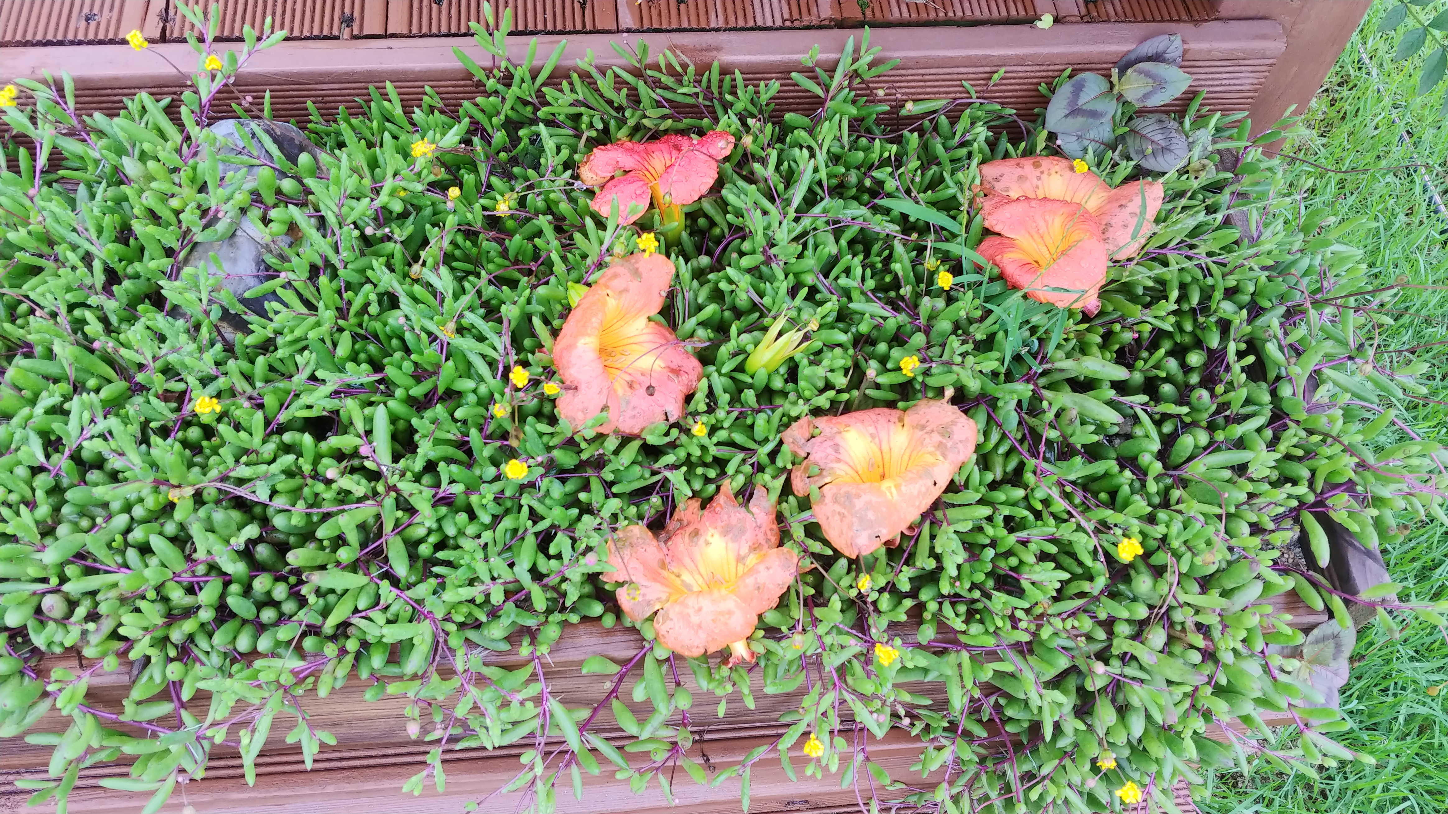 능소화는 주황색보다는 노랑이 많이 들어간 붉은 색에 가깝다.