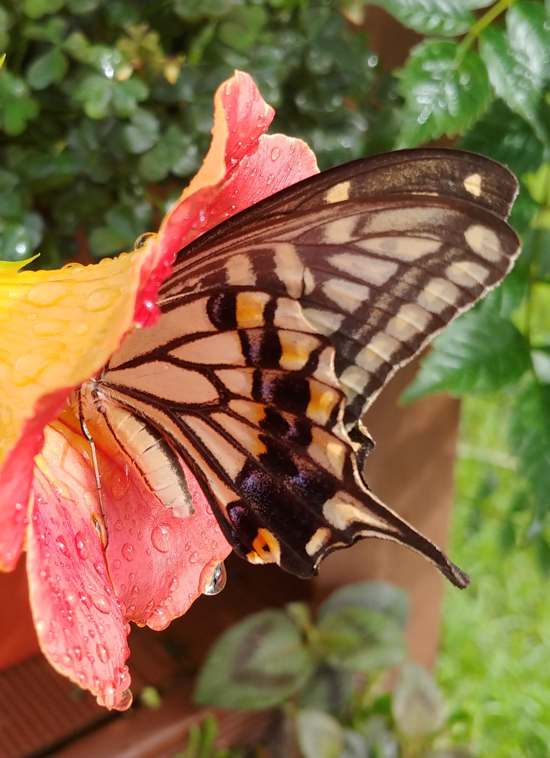 꽃잎이 커서 나비가 꽃 속으로 쏙 들어간 모습이다.