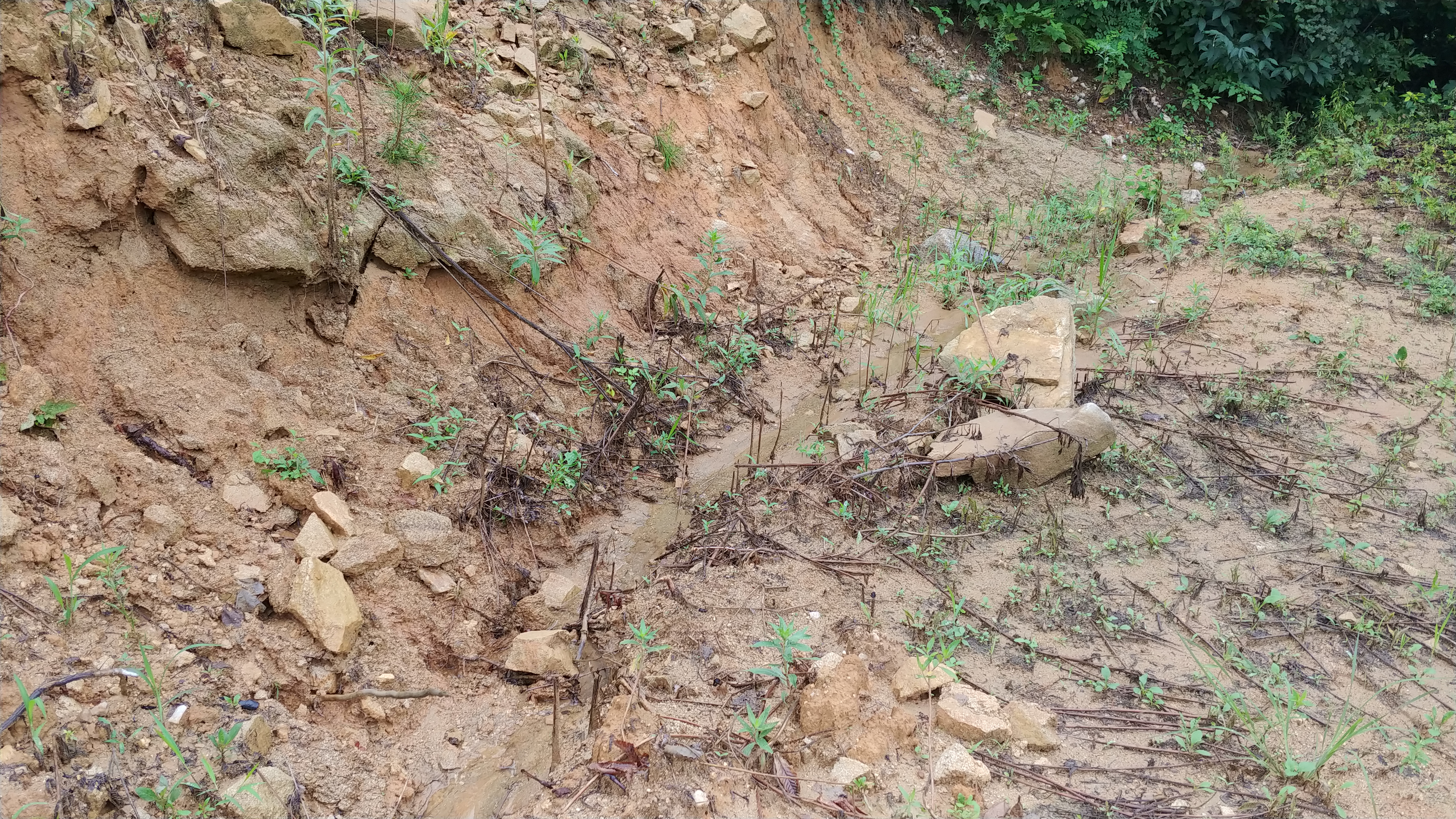 이곳에 내린 비는 큰 냇물을 이루어 고랑을 타고 산사태가 난 곳으로 흘러들었다.