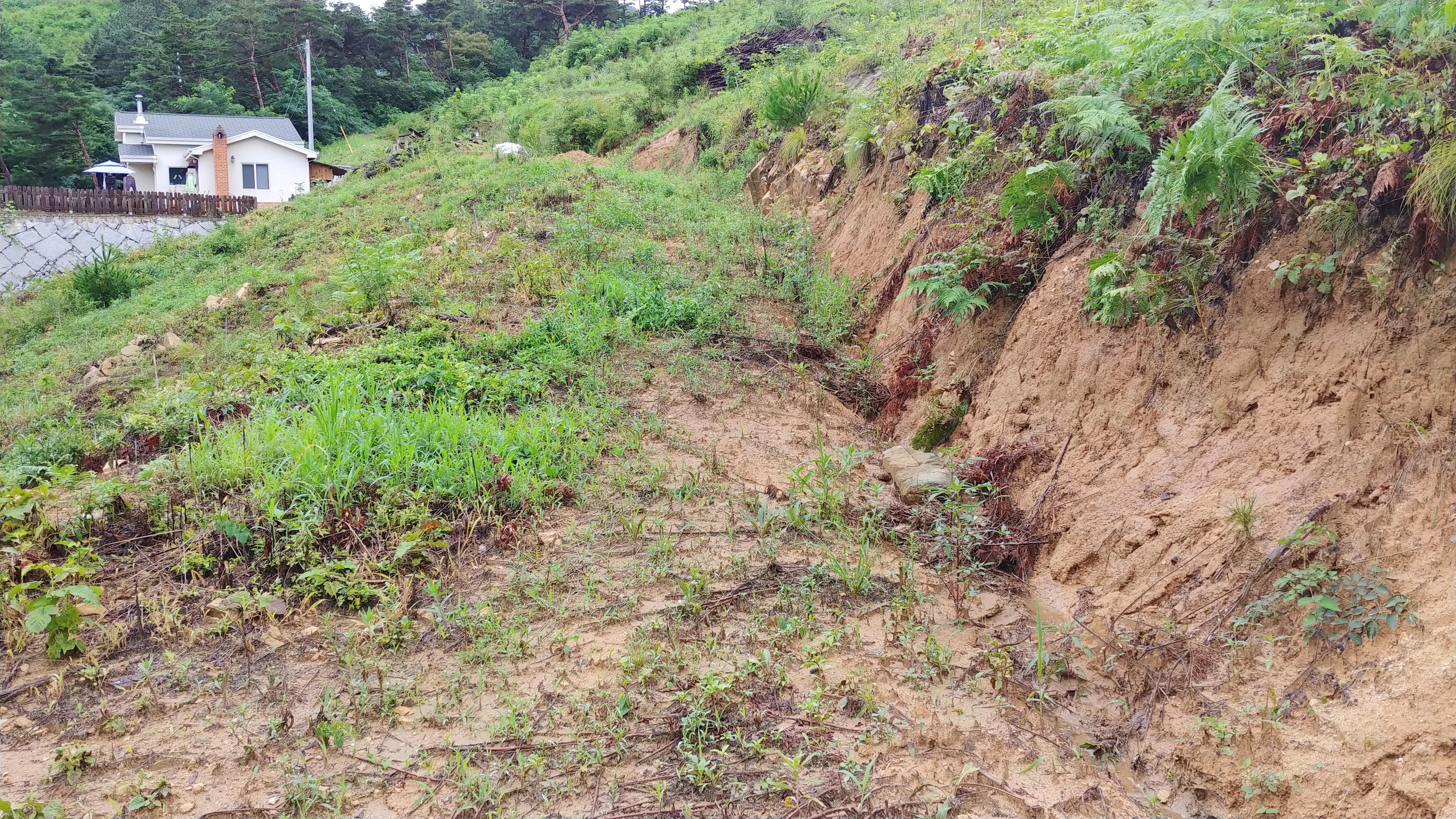 장마기간 내린 폭우는 집 뒤 야산을 내려 앉혔다.