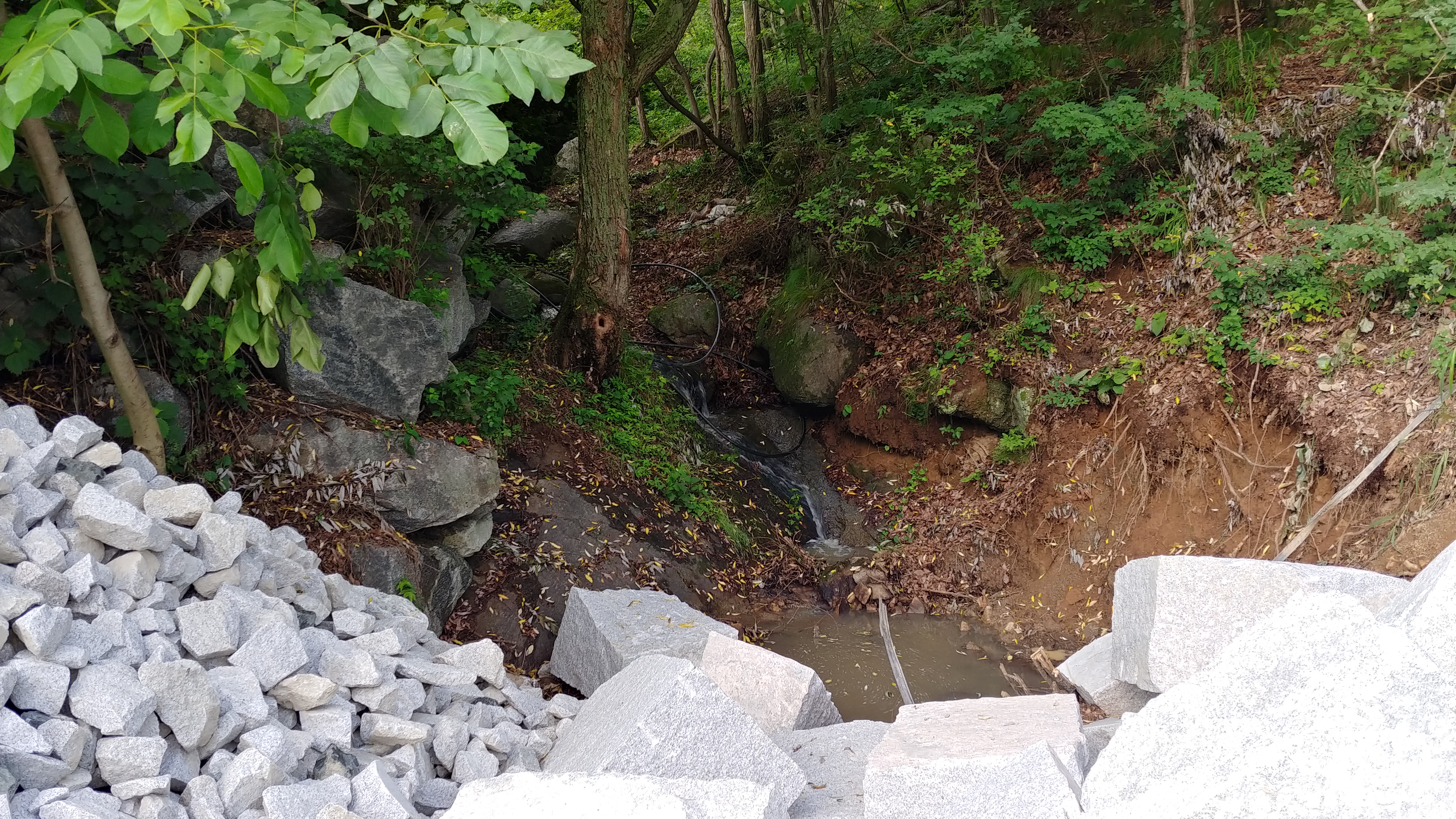 집 앞 실개천 정비를 마치고 엄청난 양의 비가 내렸다.