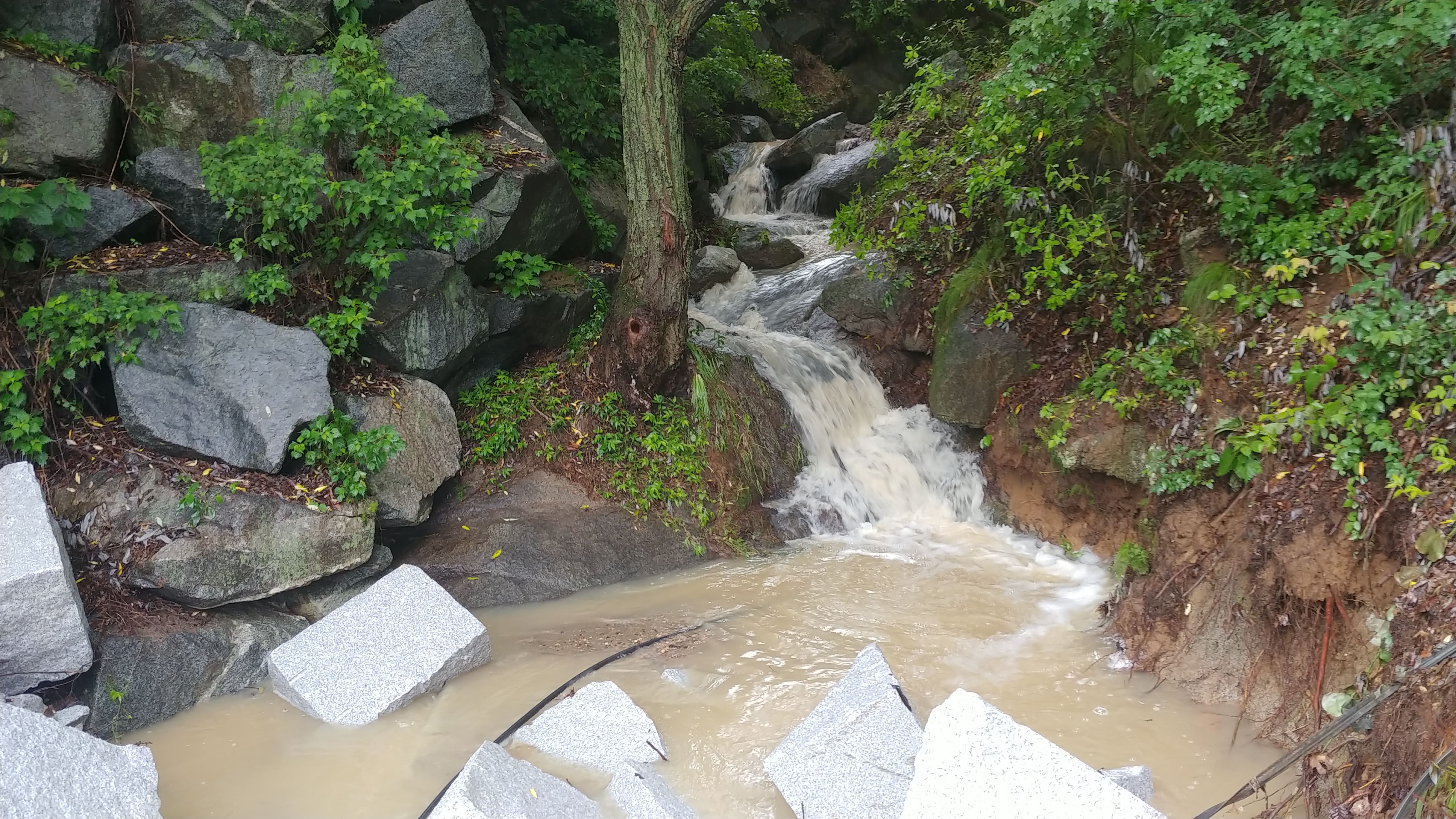 이틀에 걸쳐 300mm가 넘는 많은 양의 비는 소하천을 넘칠 정도로 물이 불어났다.